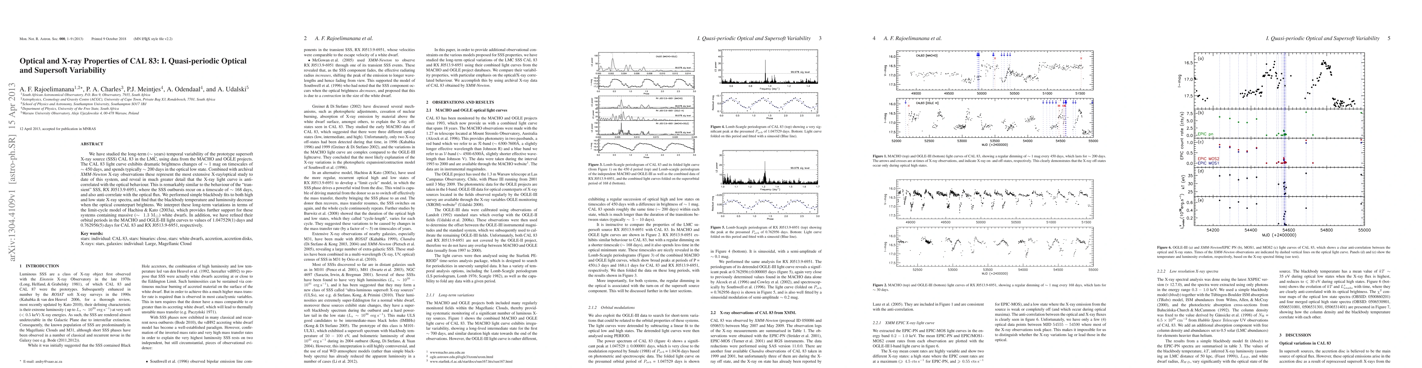 Researchers studied CAL 83, a supersoft X-ray source in the Large Magellanic Cloud, finding dramatic brightness changes and an anti-correlated relationship between X-ray and optical variability, supporting a limit-cycle model of massive white dwarf systems.