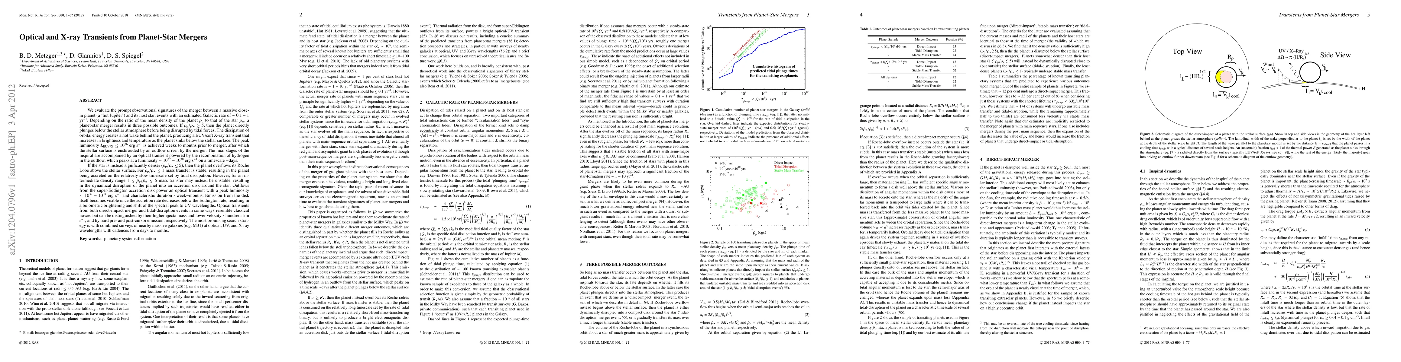 We evaluate the prompt observational signatures of the merger between a massive close-in planet (a `hot Jupiter') and its host star, events with an estimated Galactic rate of ~0.1-1/yr. Depending on the ratio of the mean density of the planet rho_p to that of the star rho_star, a merger results in three possible outcomes. If rho_p/rho_star > 5, then the planet directly plunges below the stellar atmosphere before being disrupted by tidal forces. Dissipation of orbital energy creates a hot wake behind the planet, producing a EUV/soft X-ray transient as the planet sinks below the stellar surface. The peak luminosity L_X ~ 1e36 erg/s is achieved weeks-months prior to merger, after which the stellar surface is enshrouded by an outflow. The final inspiral is accompanied by an optical transient powered by the recombination of hydrogen in the outflow, which peaks at L~1e37-38 erg/s on a timescale ~days. If instead rho_planet/rho_star < 5, then Roche Lobe overflow occurs above the stellar surface. For rho_p/rho_star < 1, mass transfer is stable, resulting the planet being accreted on a relatively slow timescale. However, for 1 < rho_p/rho_star < 5, mass transfer may instead be unstable, resulting in the planet being dynamically disrupted into an accretion disk around the star. Super-Eddington outflows from the disk power an optical transient with L~1e37-38 erg/s and characteristic duration ~week-months. The disk itself becomes visible once the accretion rate become sub-Eddington, resulting in a bolometric brightening and spectral shift to the UV. Optical transients from planet merger events may resemble classical novae, but are distinguished by lower ejecta mass and velocity ~100s km/s, and by hard pre- and post-cursor emission, respectively. Promising search strategies include combined optical, UV, and X-ray surveys of nearby massive galaxies with cadences from days to months.