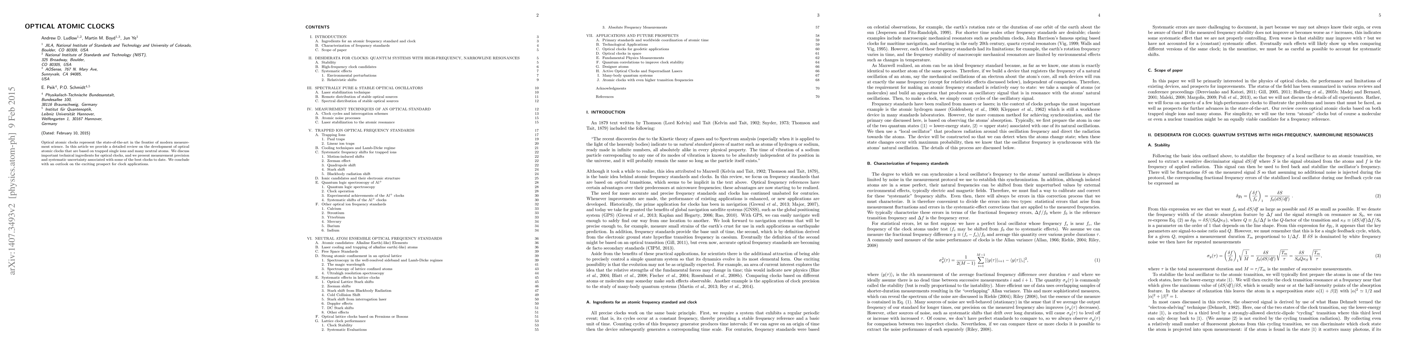 The paper offers an in-depth analysis of optical atomic clocks based on trapped ions and neutral atoms, highlighting their technical aspects, performance, and potential for future applications.