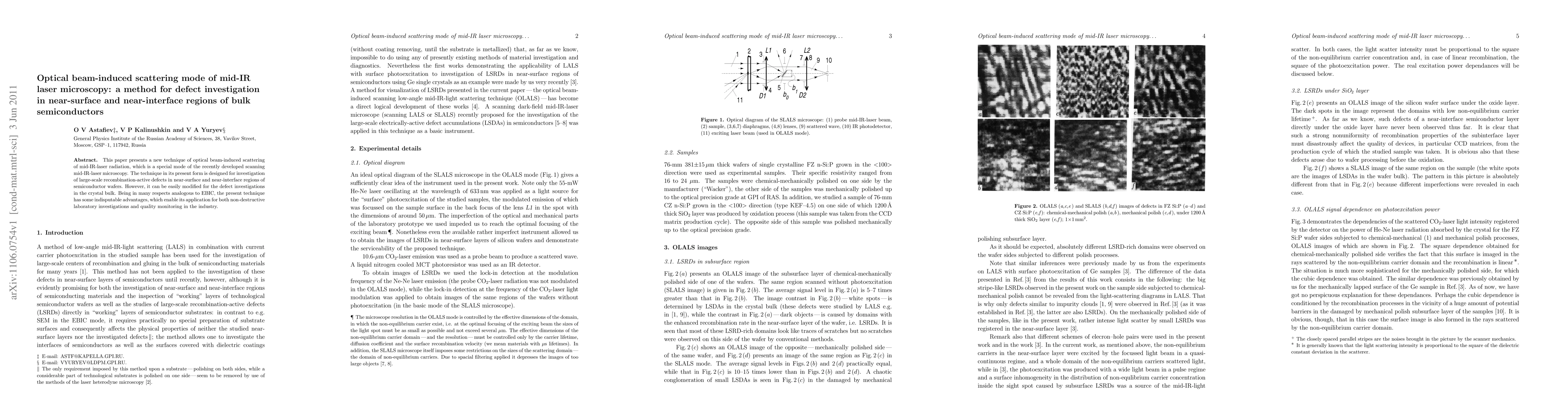 This paper introduces a novel optical beam-induced scattering method using mid-IR laser microscopy for detecting large-scale recombination-active defects in near-surface and near-interface regions of semiconductor wafers. The technique, similar to EBIC, offers advantages for non-destructive laboratory studies and industrial quality monitoring.