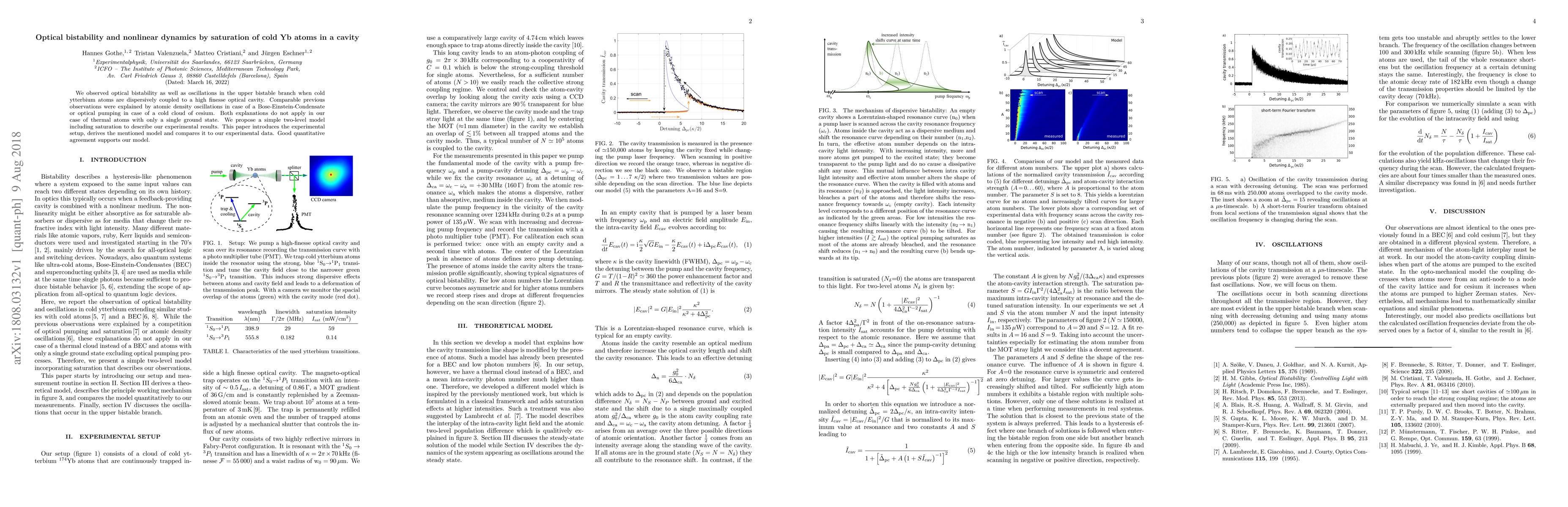 We observed optical bistability as well as oscillations in the upper bistable branch when cold ytterbium atoms are dispersively coupled to a high finesse optical cavity. Comparable previous observations were explained by atomic density oscillations in case of a Bose-Einstein-Condensate or optical pumping in case of a cold cloud of cesium. Both explanations do not apply in our case of thermal atoms with only a single ground state. We propose a simple two-level model including saturation to describe our experimental results. This paper introduces the experimental setup, derives the mentioned model and compares it to our experimental data. Good quantitative agreement supports our model.