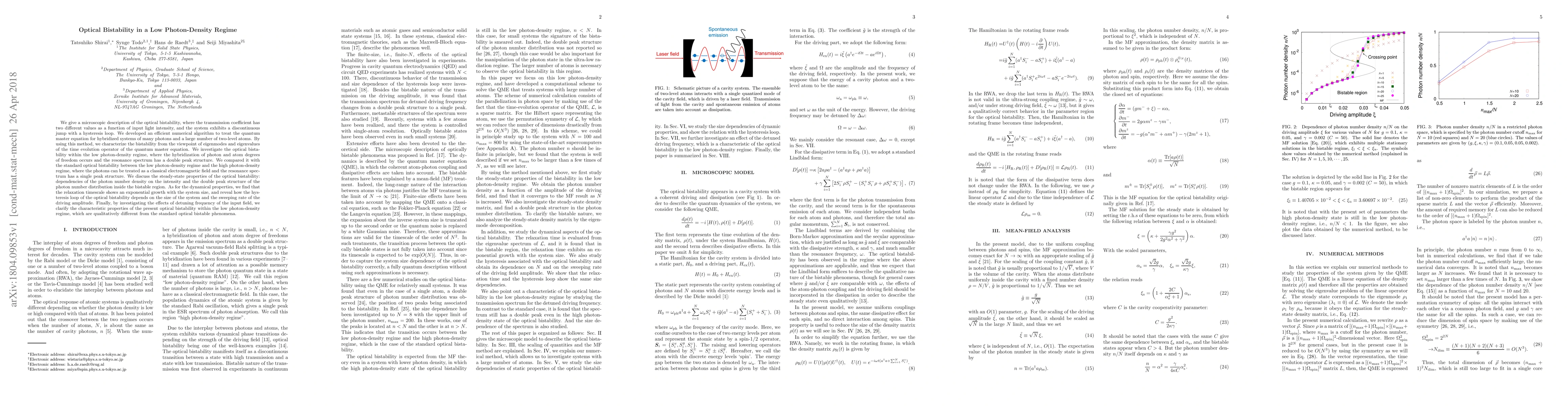 This paper provides a microscopic analysis of optical bistability in low photon-density regimes, employing a quantum master equation and numerical methods. It reveals distinct steady-state and dynamical properties, including a double peak resonance spectrum and exponential growth in relaxation timescales, contrasting with high photon-density regimes.