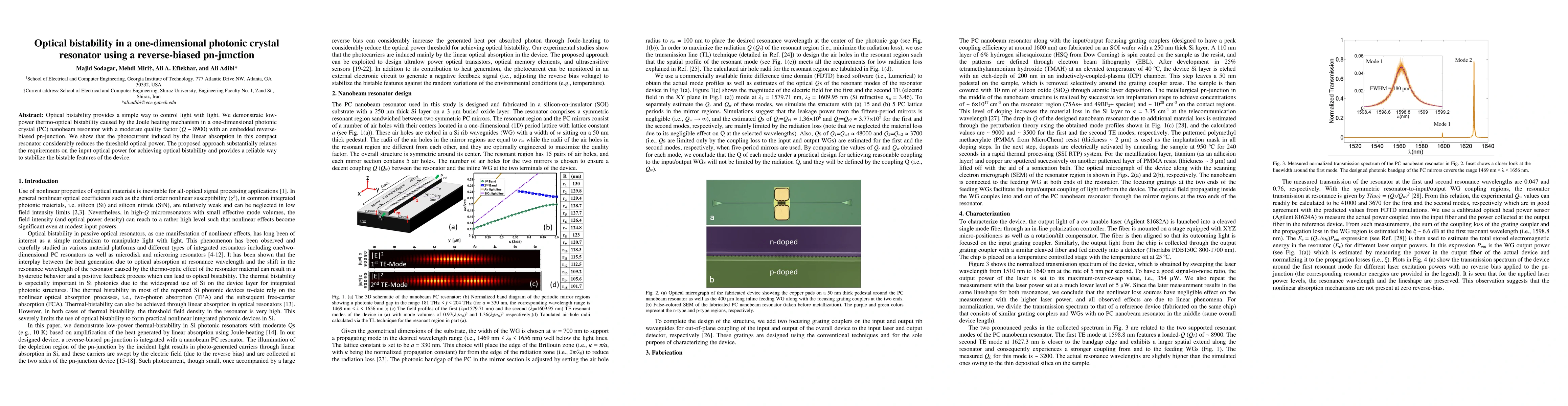 This paper demonstrates low-power optical bistability in a one-dimensional photonic crystal resonator with a reverse-biased pn-junction, utilizing Joule heating. The approach significantly lowers the threshold optical power required, offering a compact and efficient method for light control.