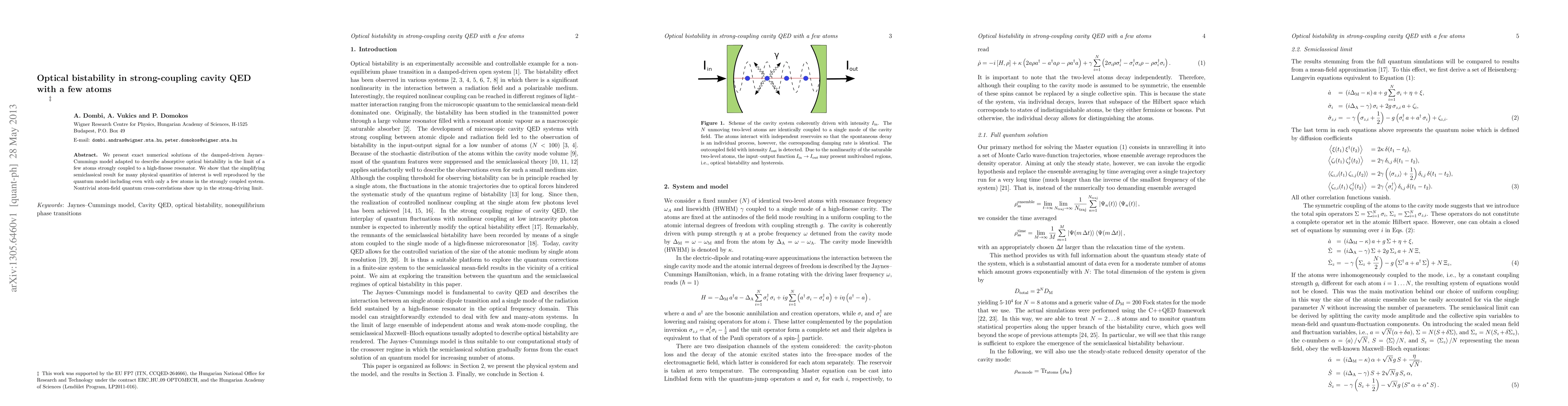 Researchers study optical bistability in a system of strongly coupled atoms and high-finesse resonator, finding that quantum effects are well-reproduced even with just a few atoms, leading to nontrivial correlations between atom and field states.