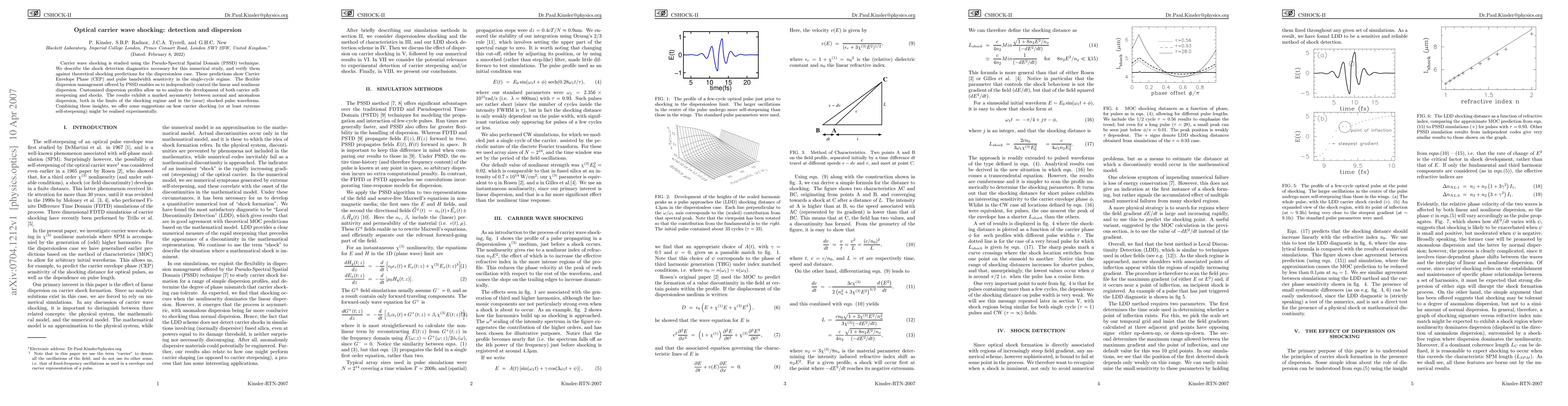 This paper investigates carrier wave shocking using the PSSD technique, detailing diagnostics for shock detection and verifying them against theoretical predictions. It highlights the sensitivity to CEP and pulse bandwidth, and proposes methods for controlling dispersion to analyze shock development, revealing asymmetry in dispersion regimes and suggesting potential experimental realizations.