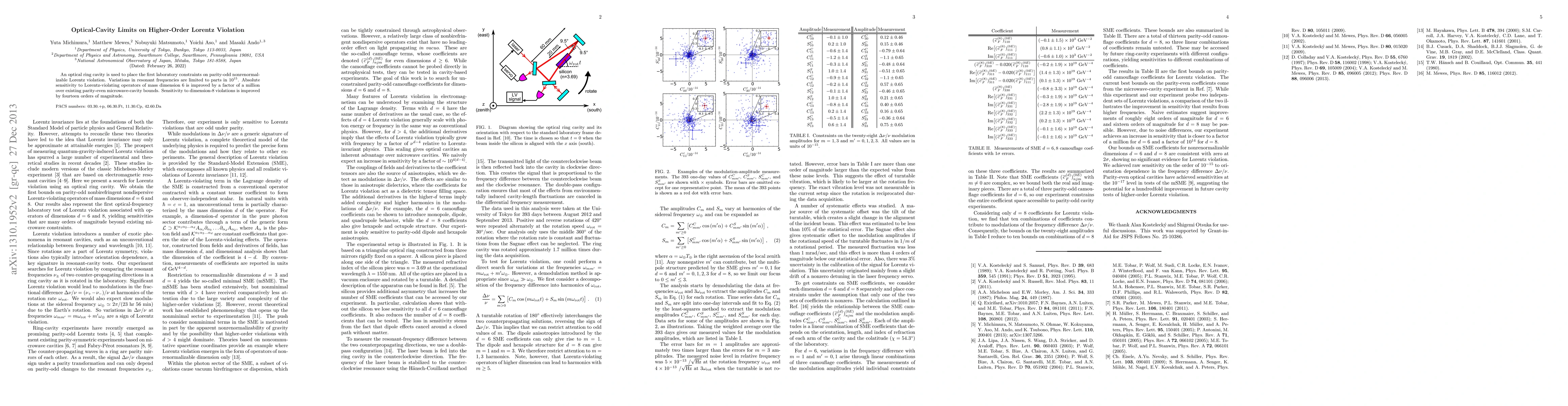 Researchers improved constraints on parity-odd Lorentz violation by a million times using an optical ring cavity, setting new limits on mass dimension 6 violations and making them 14 orders of magnitude more sensitive to dimension 8 violations.