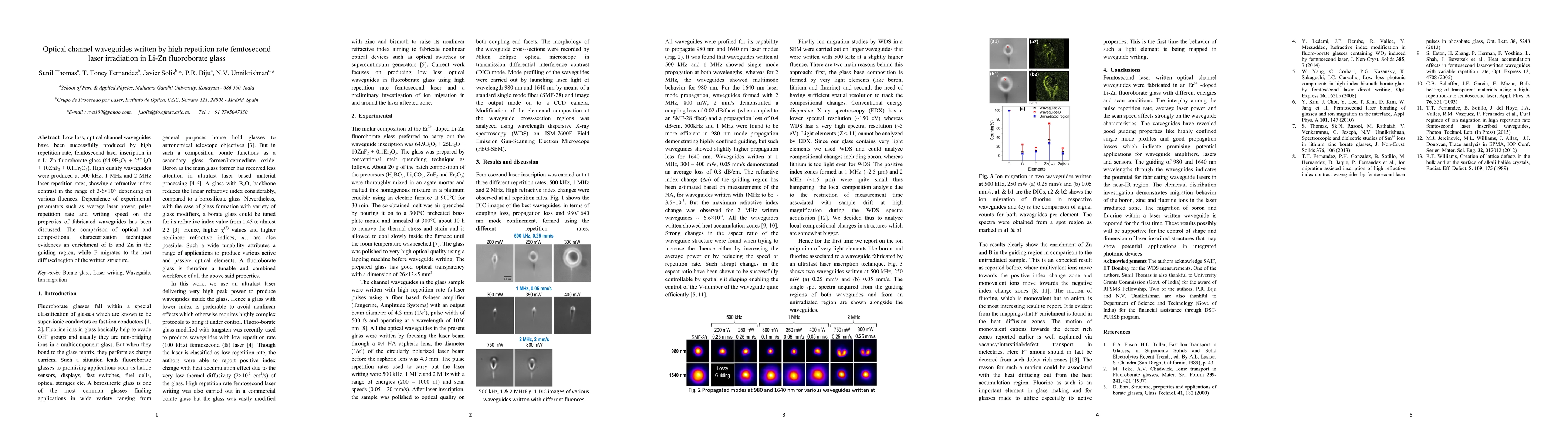 This paper details the successful fabrication of low-loss optical channel waveguides in Li-Zn fluoroborate glass using high repetition rate femtosecond laser inscription. The study investigates the impact of laser parameters on waveguide properties, revealing a refractive index contrast dependent on fluence and laser repetition rates.