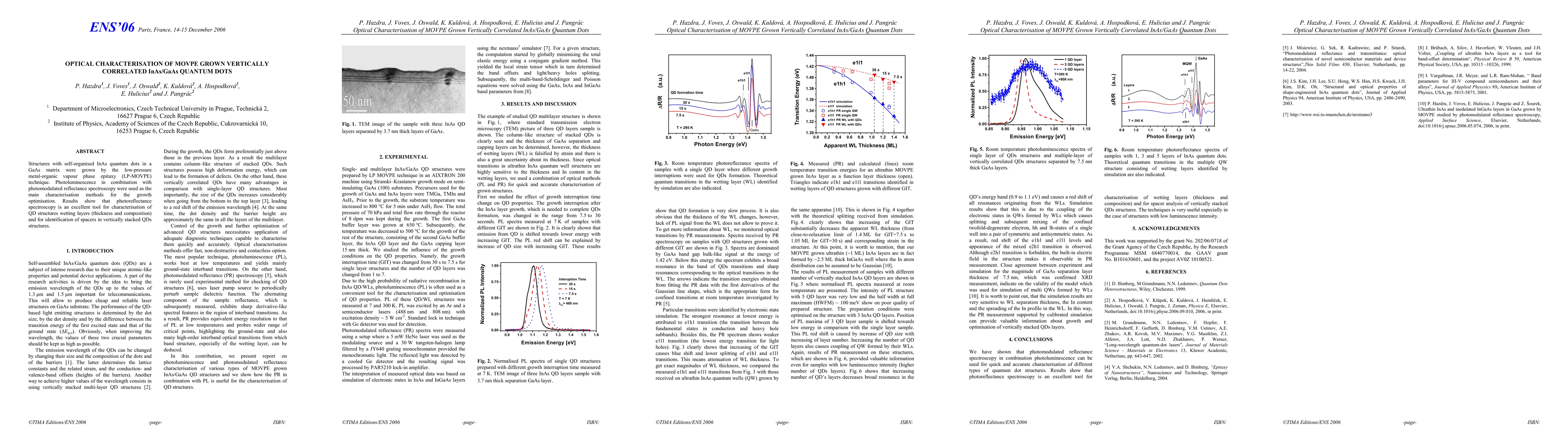 This study optimises the growth of vertically correlated InAs/GaAs quantum dots using LP-MOVPE, with photoluminescence and photomodulated reflectance spectroscopy revealing the effectiveness of the latter in characterising QD structures and identifying spacers in stacked QD layers.