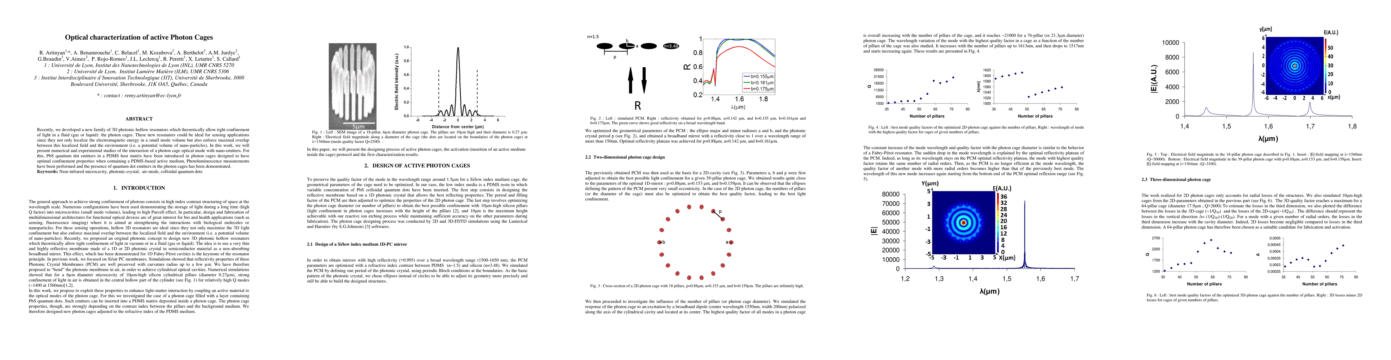 This paper presents optical characterization of novel 3D photonic hollow resonators called photon cages, which tightly confine light and maximize interaction with nano-emitters. Experiments using PbS quantum dots in PDMS host matrices within these cages confirm their potential for sensing applications.