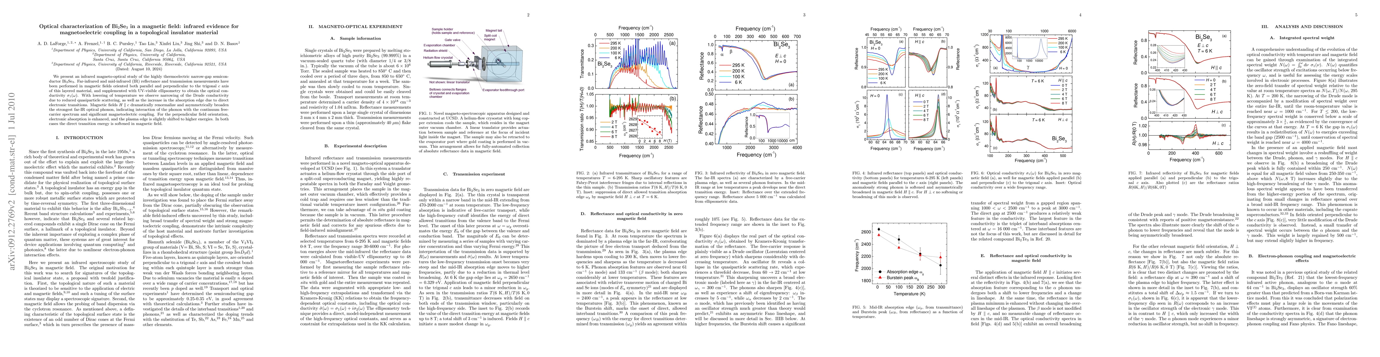 We present an infrared magneto-optical study of the highly thermoelectric narrow-gap semiconductor Bi$_2$Se$_3$. Far-infrared and mid-infrared (IR) reflectance and transmission measurements have been performed in magnetic fields oriented both parallel and perpendicular to the trigonal $c$ axis of this layered material, and supplemented with UV-visible ellipsometry to obtain the optical conductivity $\sigma_1(\omega)$. With lowering of temperature we observe narrowing of the Drude conductivity due to reduced quasiparticle scattering, as well as the increase in the absorption edge due to direct electronic transitions. Magnetic fields $H \parallel c$ dramatically renormalize and asymmetrically broaden the strongest far-IR optical phonon, indicating interaction of the phonon with the continuum free-carrier spectrum and significant magnetoelectric coupling. For the perpendicular field orientation, electronic absorption is enhanced, and the plasma edge is slightly shifted to higher energies. In both cases the direct transition energy is softened in magnetic field.