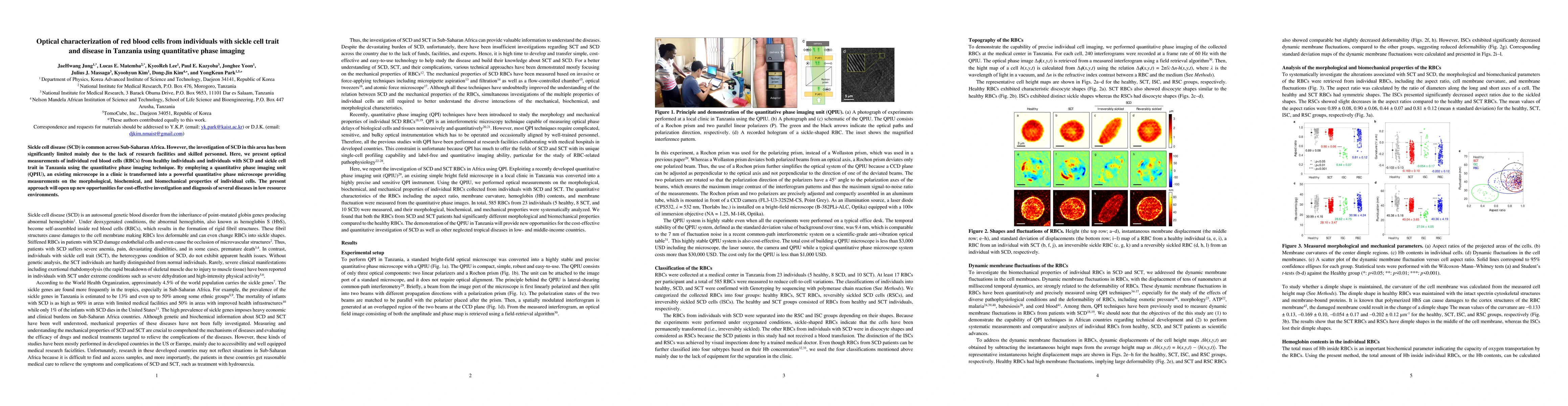 This study uses quantitative phase imaging to optically characterize red blood cells from Tanzanian individuals with sickle cell trait and disease, revealing morphological, biochemical, and biomechanical properties. This approach, integrated into existing clinic microscopes, offers a cost-effective method for disease investigation and diagnosis in low-resource settings.