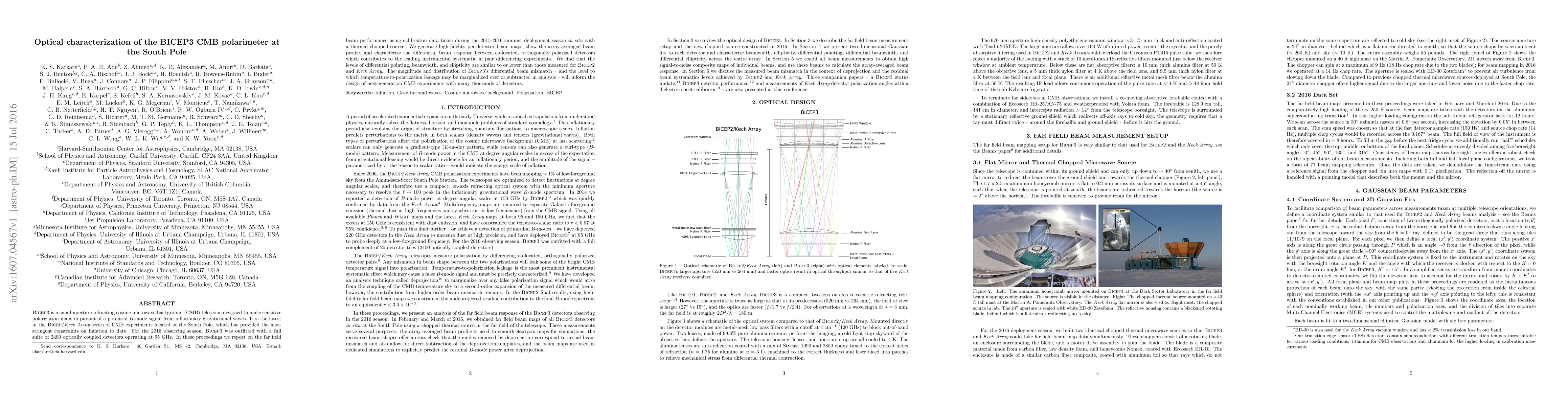 This paper details the optical characterization of the BICEP3 CMB polarimeter, focusing on its beam performance and differential beam response. The results show that BICEP3's instrumental systematics are comparable to or better than its predecessors, providing crucial insights for future CMB experiments.