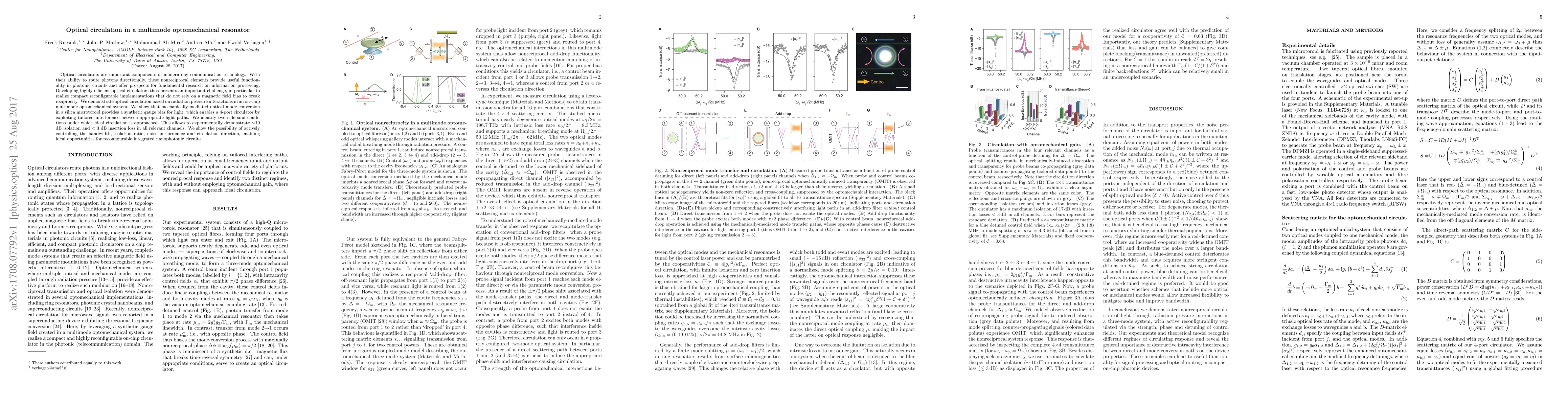 Researchers have developed a compact optical circulator using radiation pressure interactions in an on-chip multimode optomechanical system, achieving 10 dB isolation and <3 dB insertion loss.