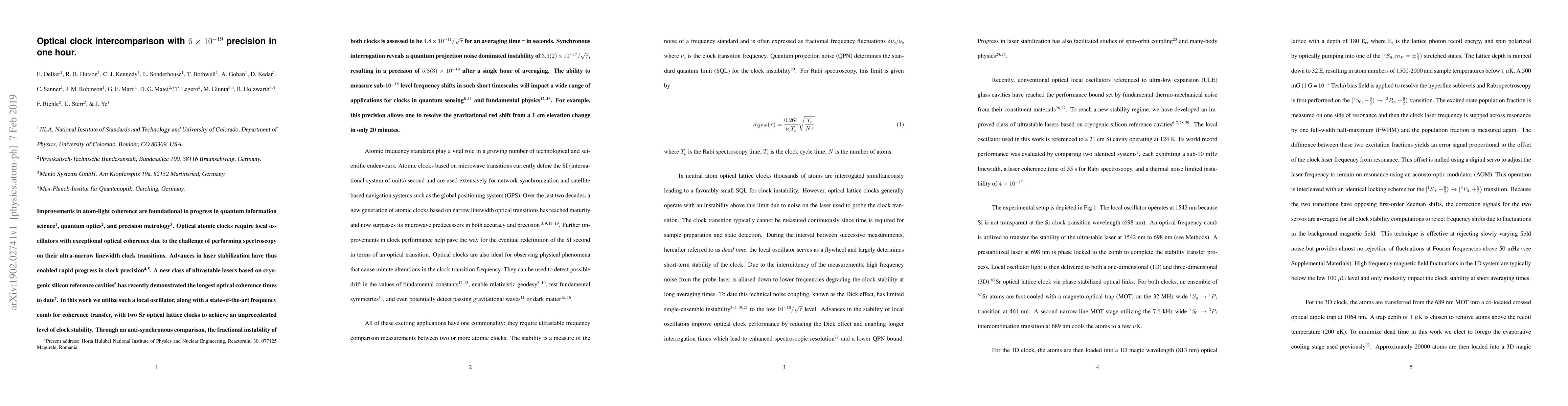 Improvements in atom-light coherence are foundational to progress in quantum information science, quantum optics, and precision metrology. Optical atomic clocks require local oscillators with exceptional optical coherence due to the challenge of performing spectroscopy on their ultra-narrow linewidth clock transitions. Advances in laser stabilization have thus enabled rapid progress in clock precision. A new class of ultrastable lasers based on cryogenic silicon reference cavities has recently demonstrated the longest optical coherence times to date. In this work we utilize such a local oscillator, along with a state-of-the-art frequency comb for coherence transfer, with two Sr optical lattice clocks to achieve an unprecedented level of clock stability. Through an anti-synchronous comparison, the fractional instability of both clocks is assessed to be $4.8\times 10^{-17}/\sqrt{\tau}$ for an averaging time $\tau$ in seconds. Synchronous interrogation reveals a quantum projection noise dominated instability of $3.5(2)\times10^{-17}/\sqrt{\tau}$, resulting in a precision of $5.8(3)\times 10^{-19}$ after a single hour of averaging. The ability to measure sub-$10^{-18}$ level frequency shifts in such short timescales will impact a wide range of applications for clocks in quantum sensing and fundamental physics. For example, this precision allows one to resolve the gravitational red shift from a 1 cm elevation change in only 20 minutes.
