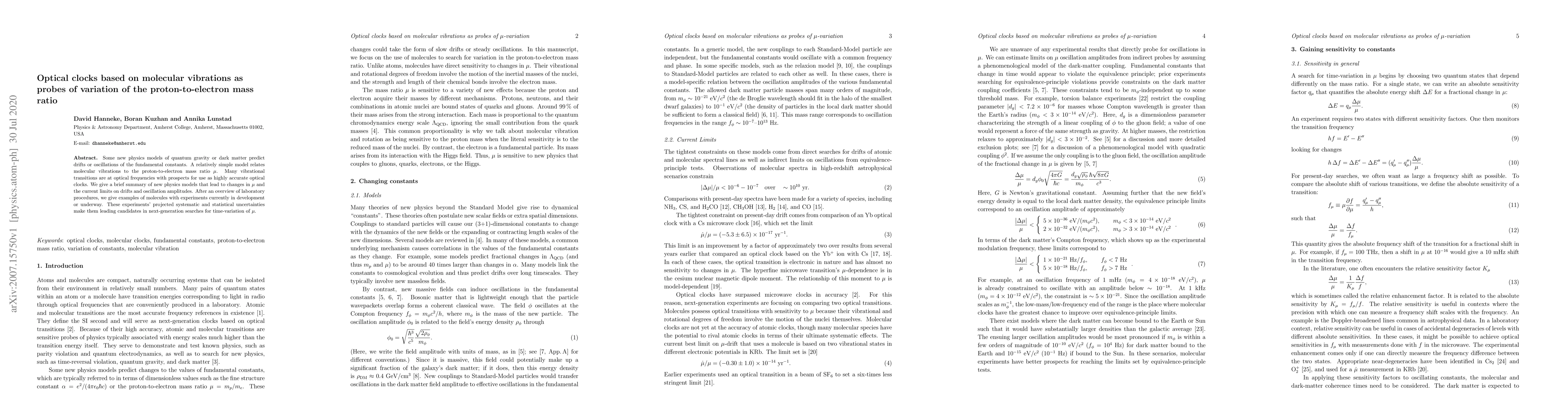 Research explores how changes in fundamental constants might affect molecular vibrations used to make highly accurate optical clocks, with implications for searching for time-variation of the proton-to-electron mass ratio.