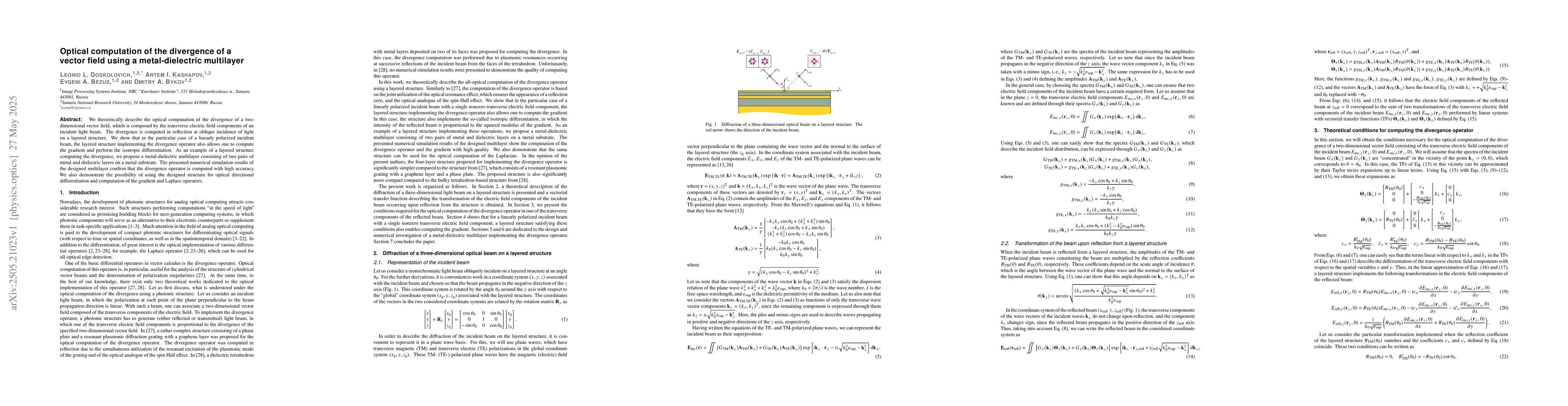 Researchers propose a metal-dielectric multilayer to compute divergence of vector fields using optical computing, with results confirmed through numerical simulation.