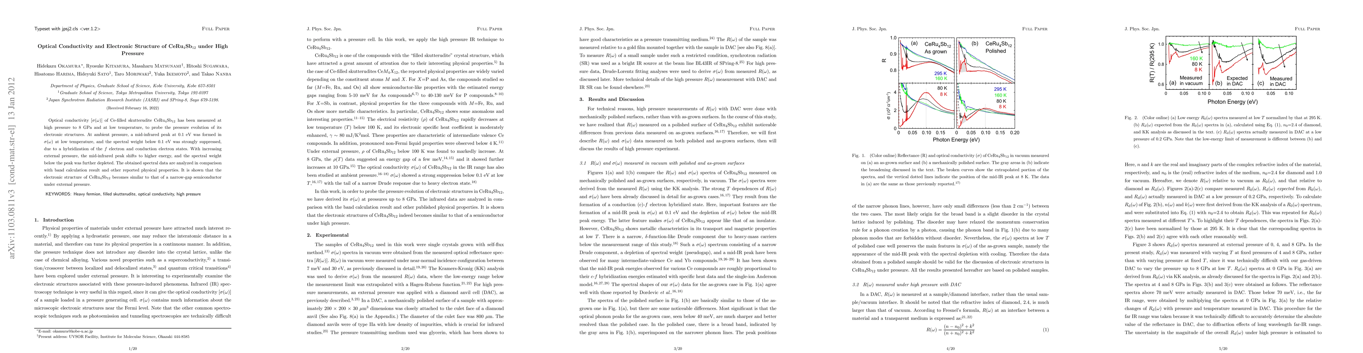 The research examines CeRu4Sb12's optical conductivity under high pressure, revealing a mid-infrared peak at 0.1 eV at ambient pressure due to f-electron hybridization. Under pressure, this peak shifts to higher energy, and spectral weight depletes, suggesting the material's electronic structure evolves towards that of a narrow-gap semiconductor.
