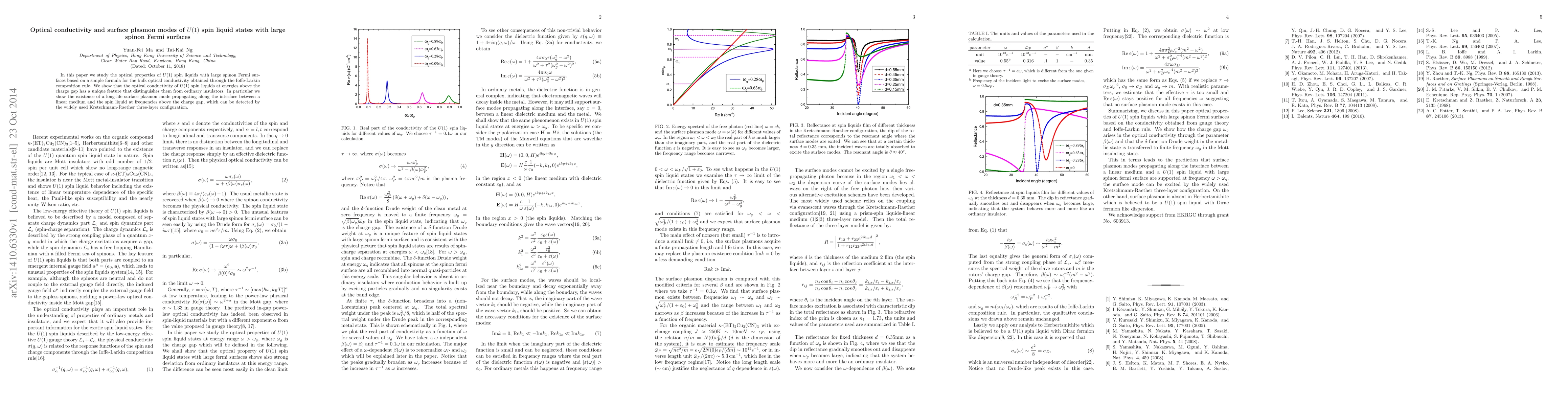 This paper investigates the optical conductivity of $U(1)$ spin liquids with large spinon Fermi surfaces, revealing a unique feature: a long-lived surface plasmon mode above the charge gap, detectable via the Kretschmann-Raether configuration. This distinguishes these spin liquids from ordinary insulators.