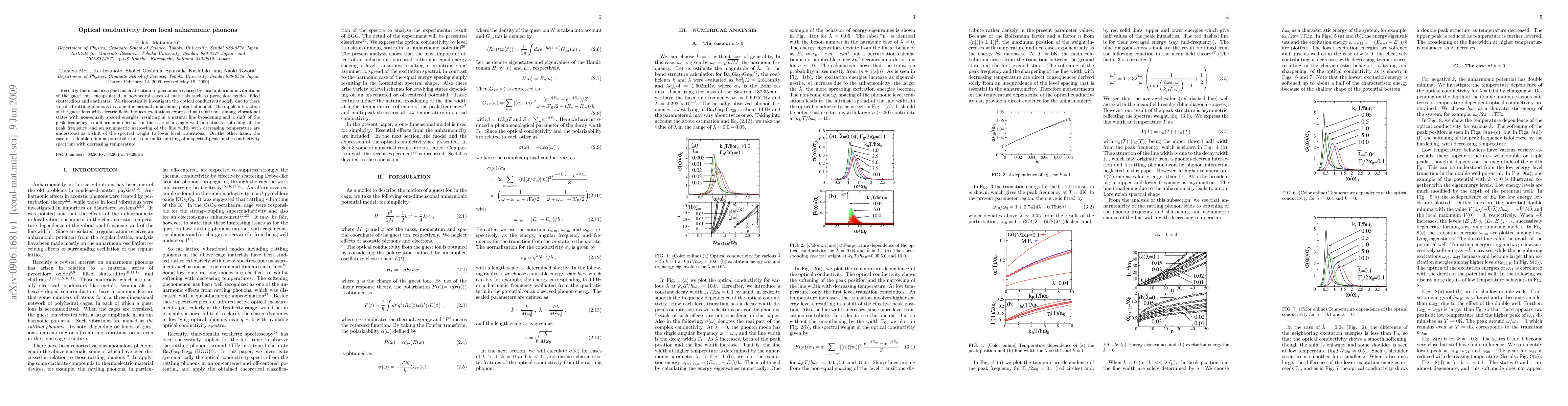 This paper investigates the optical conductivity arising from local anharmonic phonons in materials with rattling ions, using a one-dimensional potential model. It finds that anharmonic effects cause line broadening and frequency shifts, with single well potentials leading to softening and asymmetric narrowing, while double minima potentials result in spectral peak splitting.
