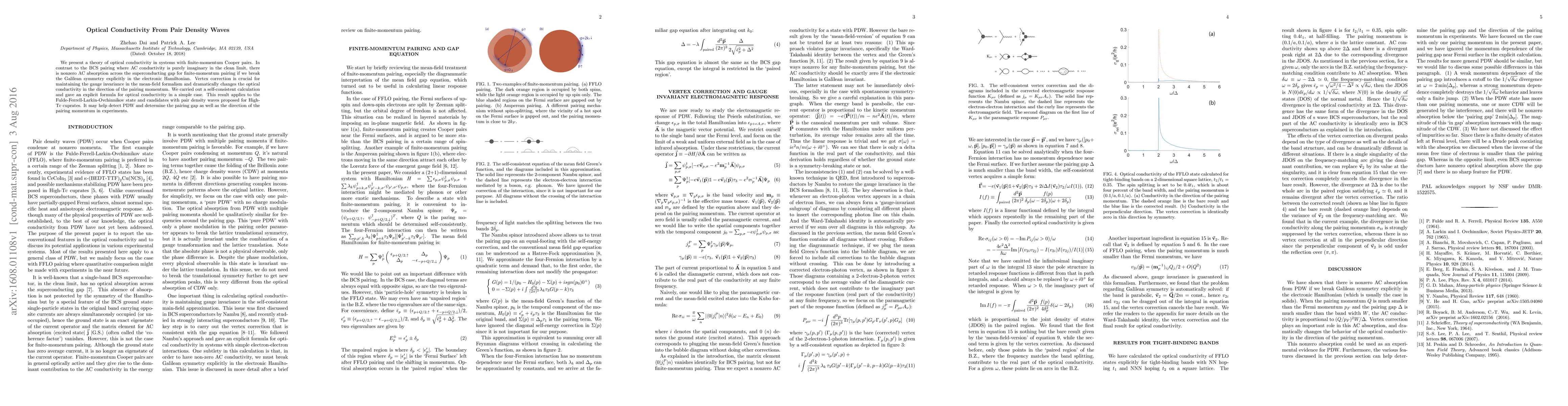 We present a theory of optical conductivity in systems with finite-momentum Cooper pairs. In contrast to the BCS pairing where AC conductivity is purely imaginary in the clean limit, there is nonzero AC absorption across the superconducting gap for finite-momentum pairing if we break the Galilean symmetry explicitly in the electronic Hamiltonian. Vertex correction is crucial for maintaining the gauge invariance in the mean-field formalism and dramatically changes the optical conductivity in the direction of the pairing momentum. We carried out a self-consistent calculation and gave an explicit formula for optical conductivity in a simple case. This result applies to the Fulde-Ferrell-Larkin-Ovchinnikov state and candidates with pair density waves proposed for High- Tc cuprates. It may help detect PDW and determine the pairing gap as well as the direction of the pairing momentum in experiments.