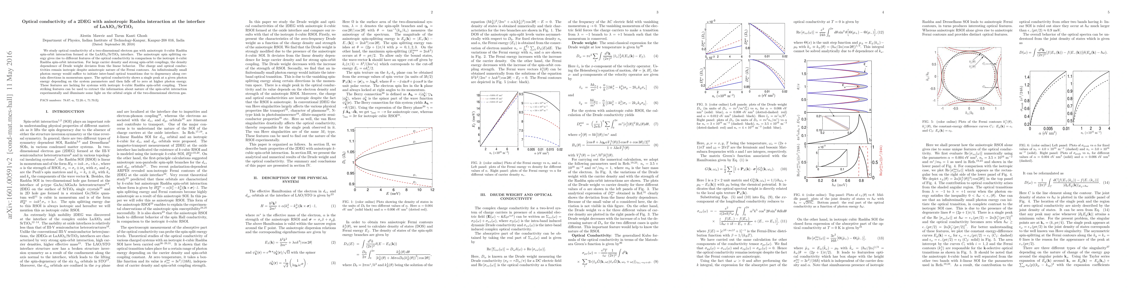 This paper investigates the optical conductivity of a two-dimensional electron gas at the LaAlO$_3$/SrTiO$_3$ interface with anisotropic Rashba spin-orbit interaction, revealing unique optical features compared to isotropic systems. The study finds deviations from linear density dependence of Drude weight and a single peak in optical conductivity at specific photon energies, providing insights into the spin-orbit interaction and orbital nature of the electron gas.