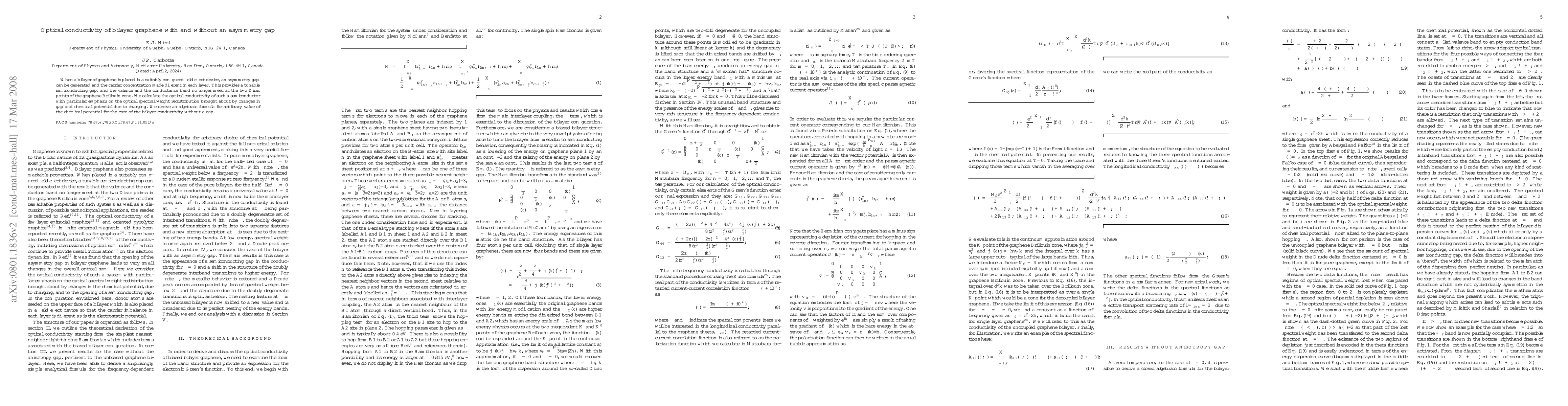 This paper investigates the optical conductivity of bilayer graphene with and without an asymmetry gap, focusing on spectral weight redistribution due to changes in gap and chemical potential. An algebraic formula for the optical conductivity in the gapless bilayer case is derived.