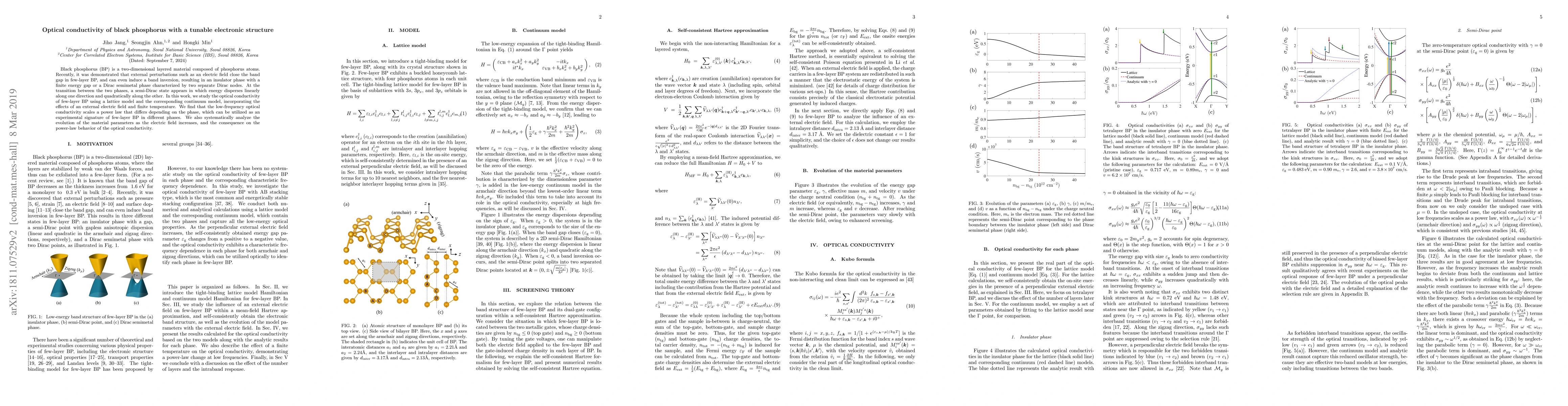 This paper investigates the optical conductivity of few-layer black phosphorus under external electric fields, revealing distinct power-law scaling behaviors in different electronic phases. The study provides an experimental signature for identifying the material's phase transitions.