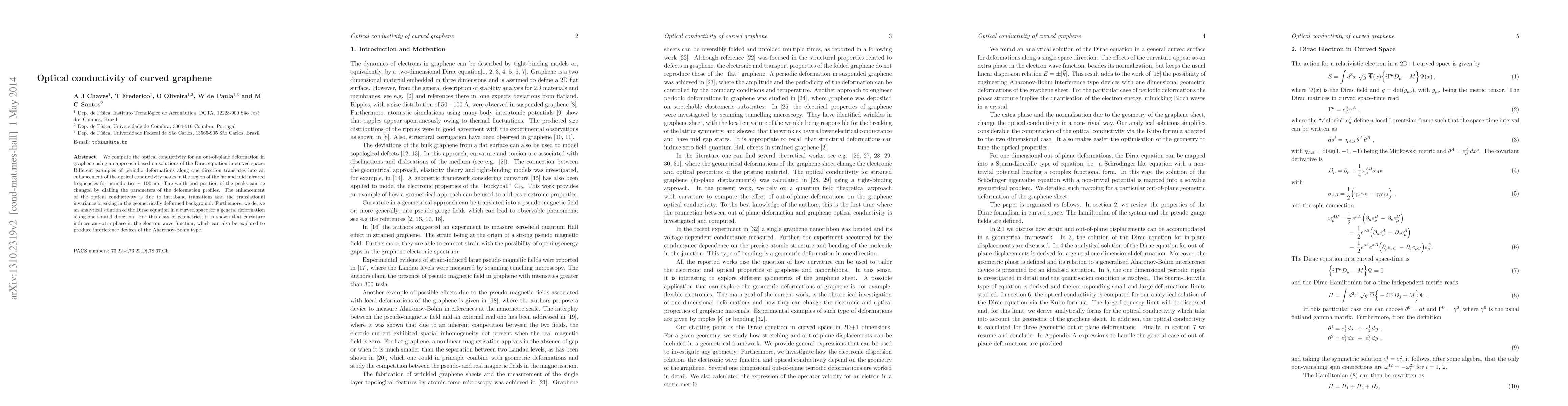 We compute the optical conductivity for an out-of-plane deformation in graphene using an approach based on solutions of the Dirac equation in curved space. Different examples of periodic deformations along one direction translates into an enhancement of the optical conductivity peaks in the region of the far and mid infrared frequencies for periodicities $\sim100\,$nm. The width and position of the peaks can be changed by dialling the parameters of the deformation profiles. The enhancement of the optical conductivity is due to intraband transitions and the translational invariance breaking in the geometrically deformed background. Furthemore, we derive an analytical solution of the Dirac equation in a curved space for a general deformation along one spatial direction. For this class of geometries, it is shown that curvature induces an extra phase in the electron wave function, which can also be explored to produce interference devices of the Aharonov-Bohm type.