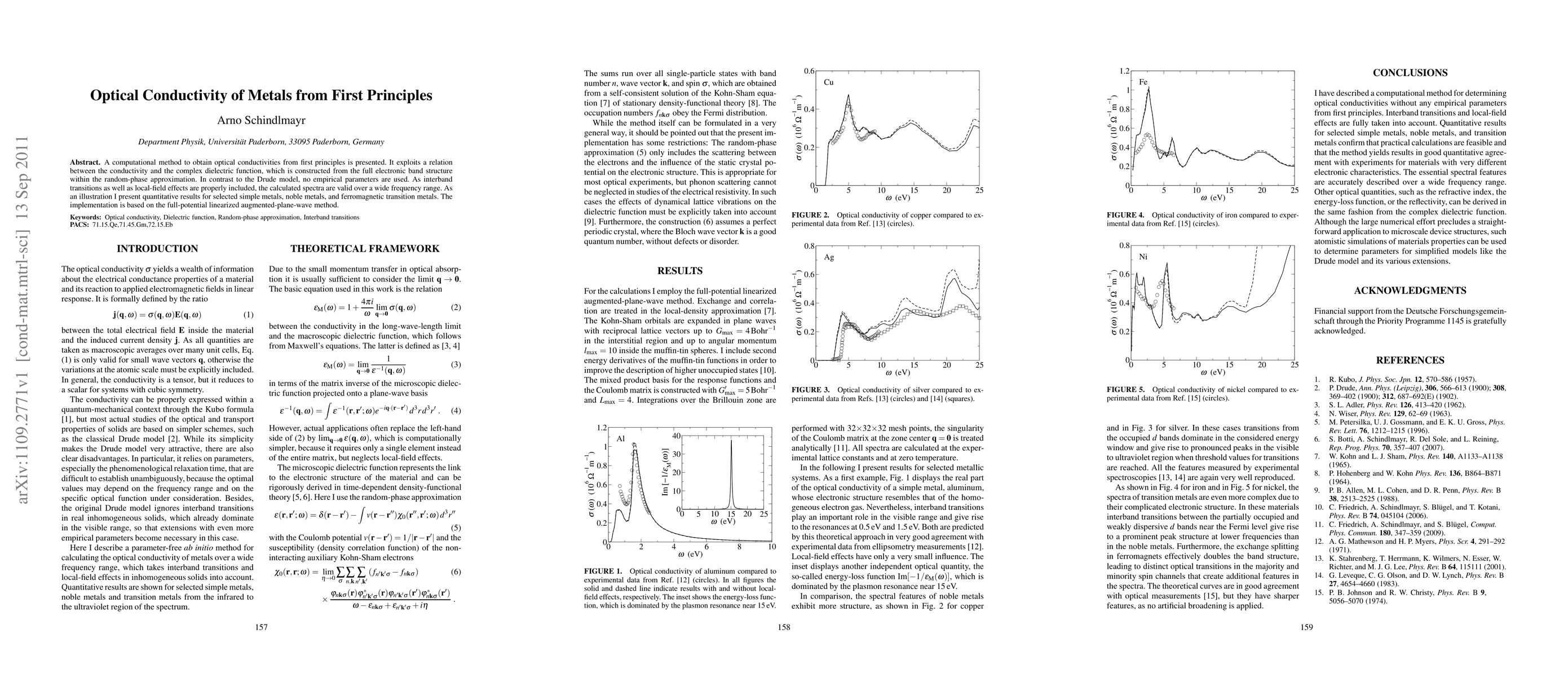 This paper presents a first-principles computational method to determine optical conductivities by linking them to the complex dielectric function derived from the full electronic band structure using the random-phase approximation. Unlike the Drude model, it avoids empirical parameters and accurately includes interband transitions and local-field effects, yielding spectra valid across a broad frequency range.
