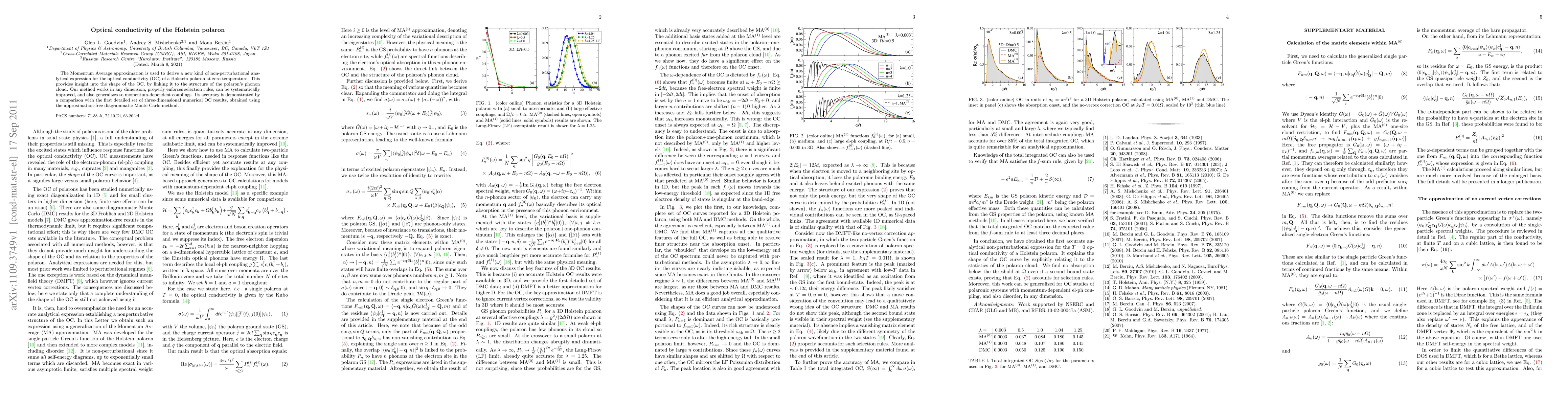 The Momentum Average approximation is used to derive a new kind of non-perturbational analytical expression for the optical conductivity (OC) of a Holstein polaron at zero temperature. This provides insight into the shape of the OC, by linking it to the structure of the polaron's phonon cloud. Our method works in any dimension, properly enforces selection rules, can be systematically improved, and also generalizes to momentum-dependent couplings. Its accuracy is demonstrated by a comparison with the first detailed set of three-dimensional numerical OC results, obtained using the approximation-free diagrammatic Monte Carlo method.