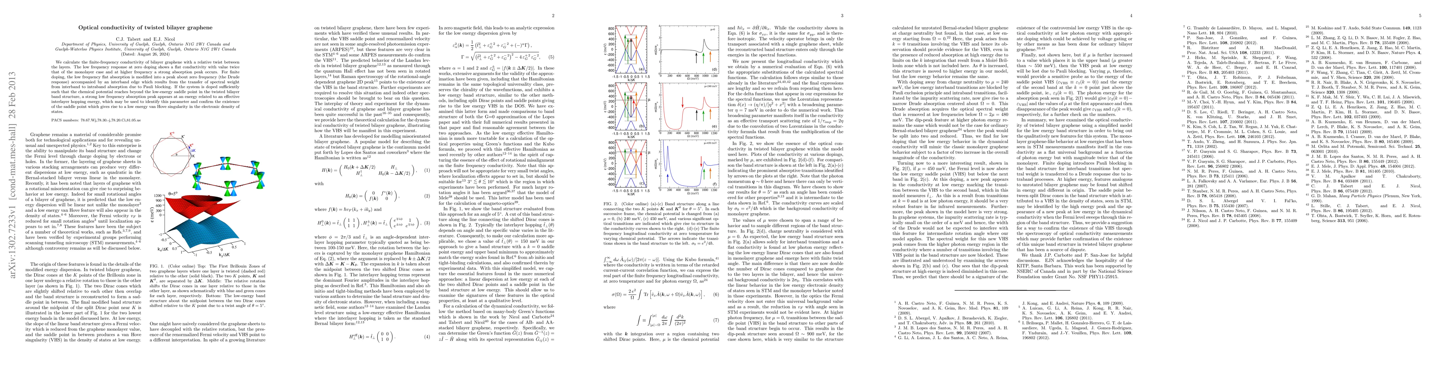 This study investigates the optical conductivity of twisted bilayer graphene, finding that it exhibits a flat conductivity at low frequencies with twice the value of monolayer graphene, transitioning to a Drude peak at finite doping. A significant absorption peak emerges at higher frequencies, and strong low-frequency absorption peaks related to interlayer hopping energies indicate the presence of a low-energy saddle point.