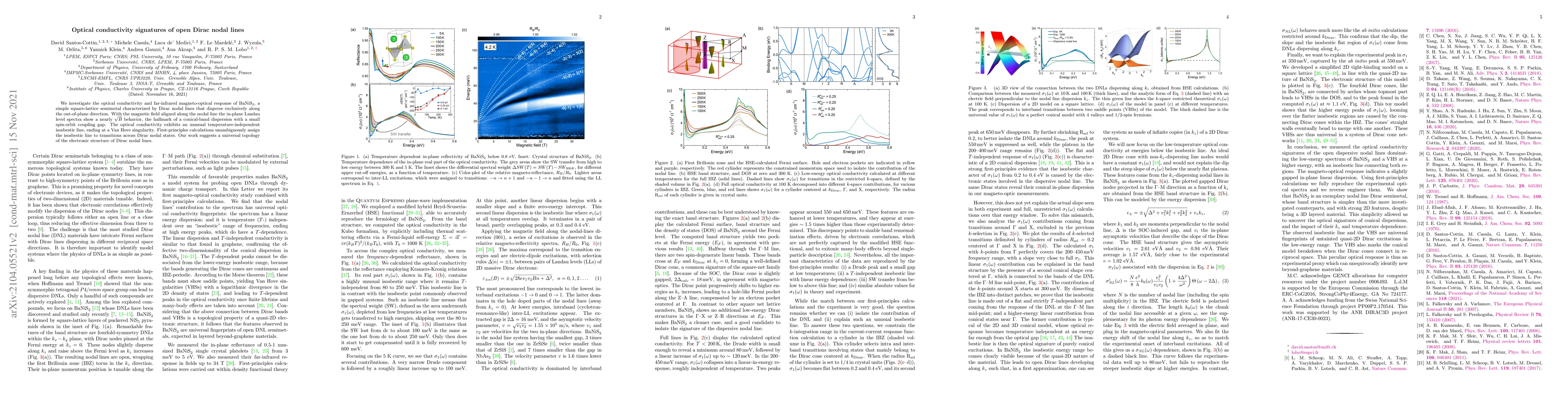 This paper examines the optical conductivity and magneto-optical response of BaNiS$_2$, revealing a $\sqrt{B}$ behavior in Landau levels due to Dirac nodal lines. The optical conductivity features a temperature-independent isosbestic line linked to transitions across these nodal states, indicating a universal topological characteristic of Dirac nodal lines.