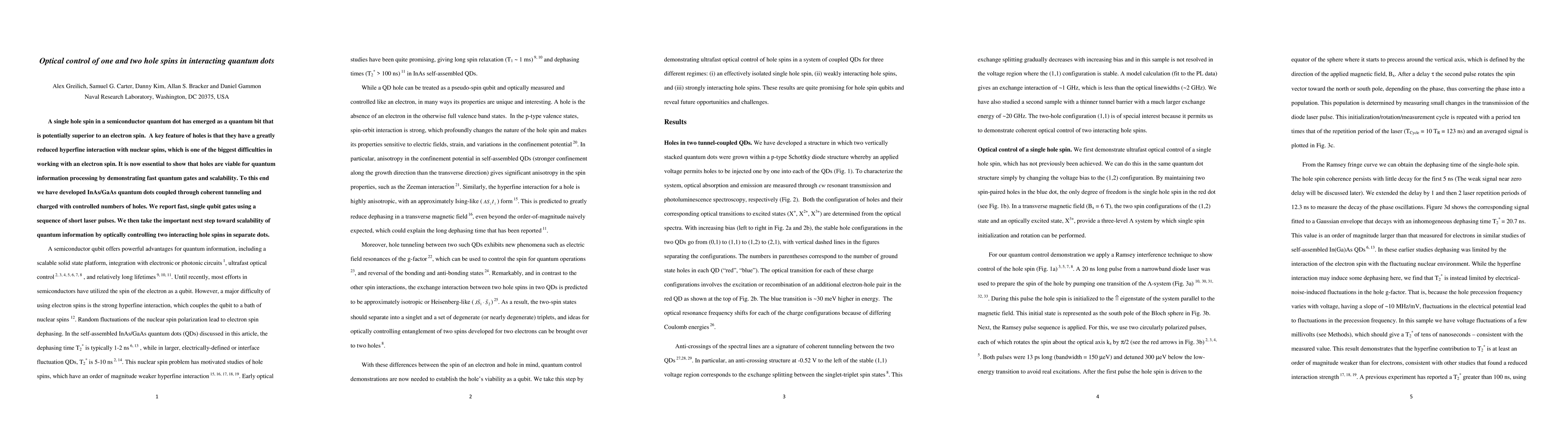 This paper demonstrates fast single-qubit quantum gates using laser pulses on hole spins in InAs/GaAs quantum dots, and extends the control to optically manipulate two interacting hole spins in separate quantum dots, advancing the feasibility of hole spins for quantum information processing.
