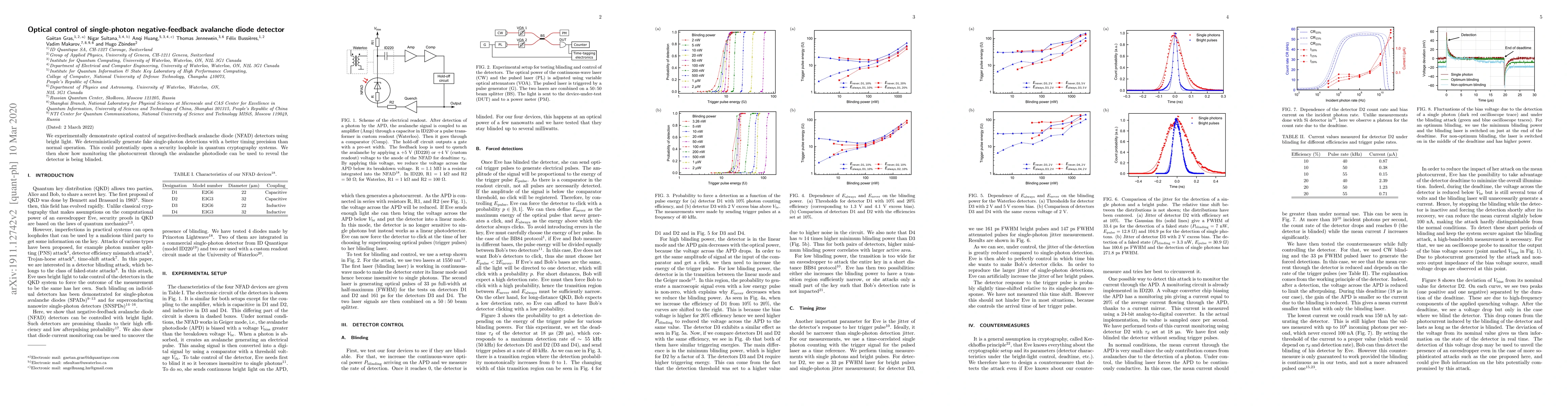 A new method for controlling free-running single-photon NFAD detectors using bright light was demonstrated.