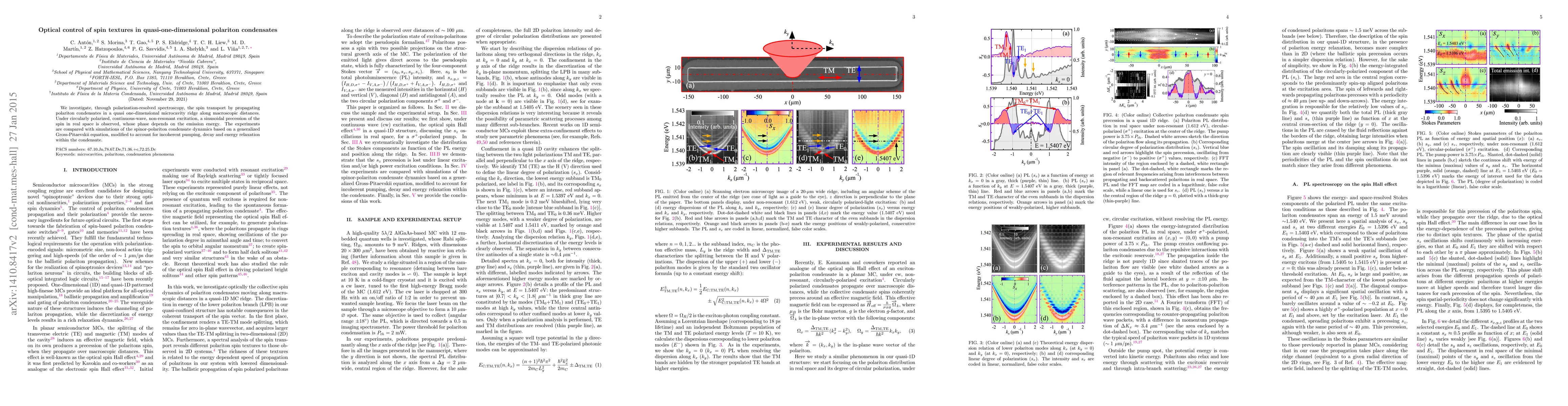 This study explores the optical manipulation of spin textures in quasi-one-dimensional polariton condensates using polarization-resolved spectroscopy, revealing a sinusoidal spin precession under circularly polarized excitation, with phase dependence on emission energy. Simulations based on a modified Gross-Pitaevskii equation corroborate the experimental findings.