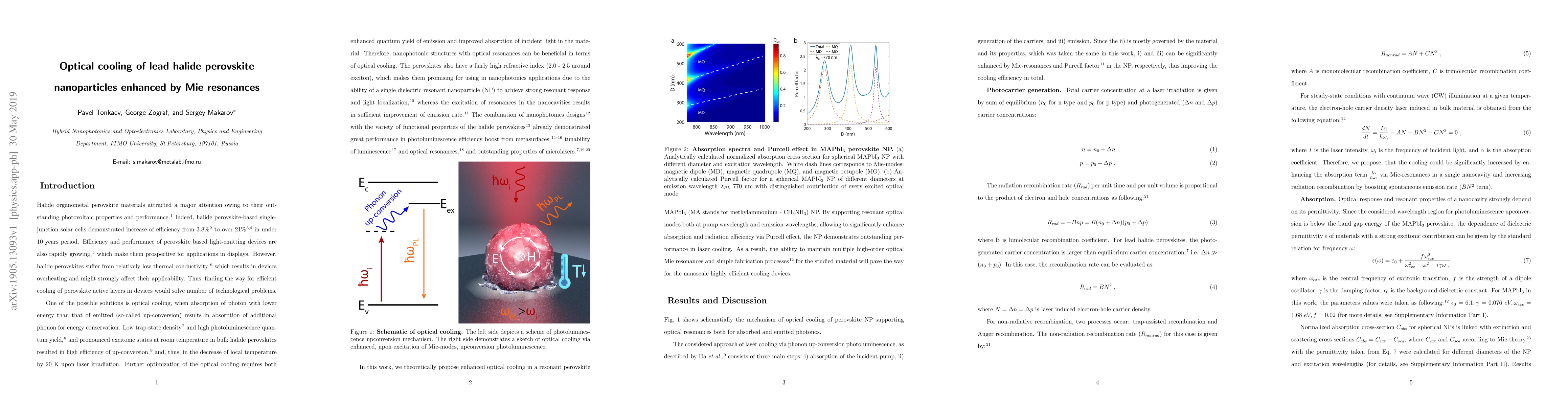 This paper proposes a novel strategy to enhance optical cooling in halide perovskite nanoparticles using Mie resonances, achieving a temperature decrease of over 100 K in a 530 nm nanoparticle under continuous wave illumination. The cooling optimization results from simultaneous excitation of magnetic quadrupole and octopole resonances.