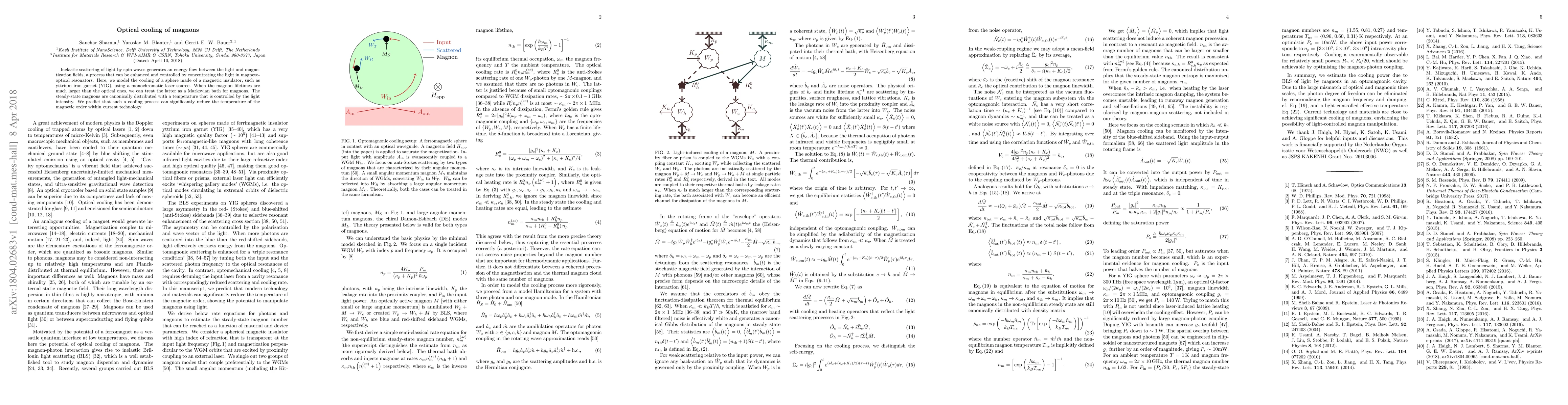 Inelastic scattering of light by spin waves generates an energy flow between the light and magnetization fields, a process that can be enhanced and controlled by concentrating the light in magneto-optical resonators. Here, we model the cooling of a sphere made of a magnetic insulator, such as yttrium iron garnet (YIG), using a monochromatic laser source. When the magnon lifetimes are much larger than the optical ones, we can treat the latter as a Markovian bath for magnons. The steady-state magnons are canonically distributed with a temperature that is controlled by the light intensity. We predict that such a cooling process can significantly reduce the temperature of the magnetic order within current technology.