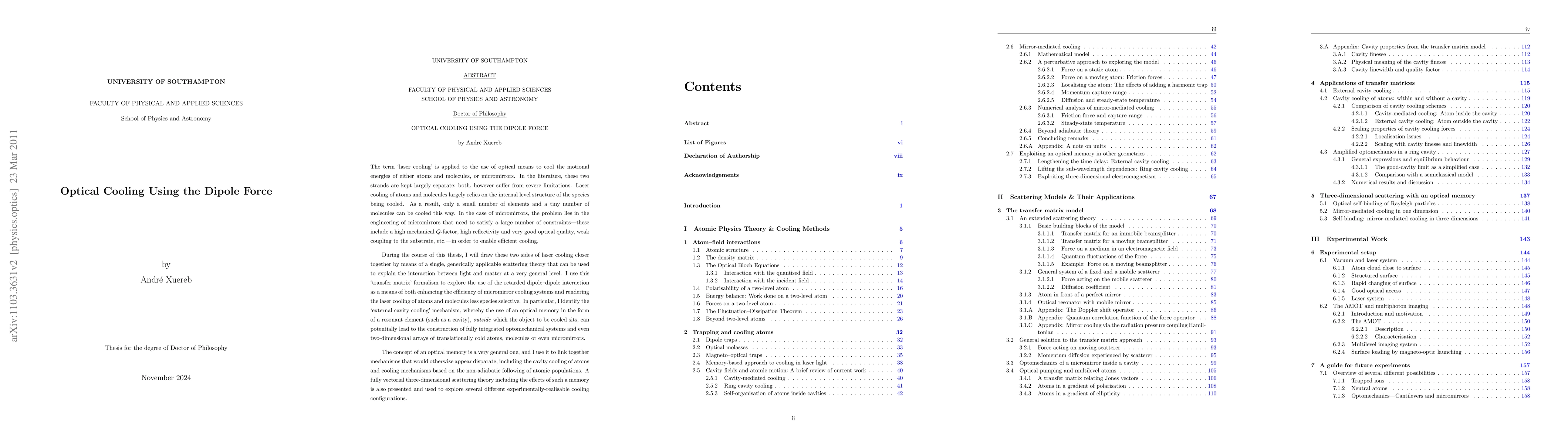 The term `laser cooling' is applied to the use of optical means to cool the motional energies of either atoms and molecules, or micromirrors. In the literature, these two strands are kept largely separate; both, however suffer from severe limitations. Laser cooling of atoms and molecules largely relies on the internal level structure of the species being cooled. As a result, only a small number of elements and a tiny number of molecules can be cooled this way. In the case of micromirrors, the problem lies in the engineering of micromirrors that need to satisfy a large number of constraints---these include a high mechanical Q-factor, high reflectivity and very good optical quality, weak coupling to the substrate, etc.---in order to enable efficient cooling. During the course of this thesis, I will draw these two sides of laser cooling closer together by means of a single, generically applicable scattering theory that can be used to explain the interaction between light and matter at a very general level. I use this `transfer matrix' formalism to explore the use of the retarded dipole--dipole interaction as a means of both enhancing the efficiency of micromirror cooling systems and rendering the laser cooling of atoms and molecules less species selective. In particular, I identify the `external cavity cooling' mechanism, whereby the use of an optical memory in the form of a resonant element (such as a cavity), outside which the object to be cooled sits, can potentially lead to the construction of fully integrated optomechanical systems and even two-dimensional arrays of translationally cold atoms, molecules or even micromirrors.