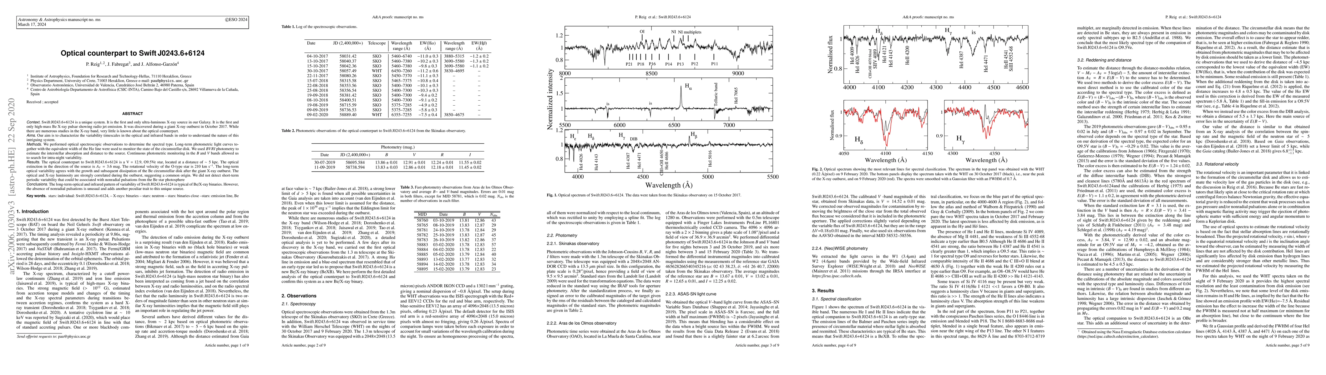 The optical counterpart to Swift J0243.6+6124 is identified as a V = 12.9, O9.5Ve star with significant optical extinction, and its long-term variability correlates with the evolution of its Be circumstellar disk following the X-ray outburst, suggesting a common origin.