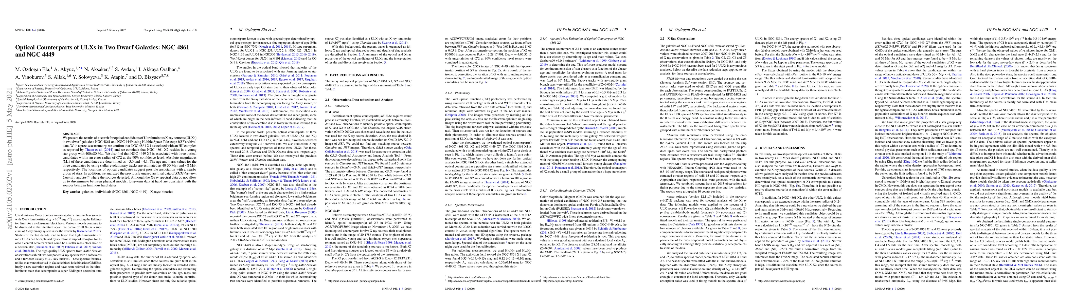 This study identifies optical counterparts of Ultraluminous X-ray sources (ULXs) in dwarf galaxies NGC 4861 and NGC 4449 using Hubble Space Telescope data. It confirms NGC 4861 X1's association with an HII complex and finds NGC 4861 X2 in a young star group, while NGC 4449 X7 shows three optical candidates suggesting a nearby star group association.