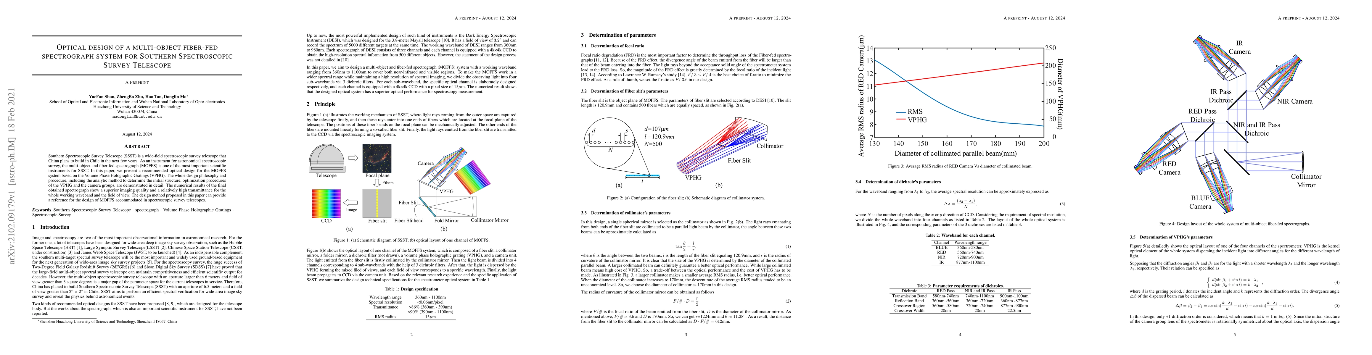 This paper presents an optical design for the multi-object fiber-fed spectrograph (MOFFS) system for the Southern Spectroscopic Survey Telescope (SSST), utilizing Volume Phase Holographic Gratings (VPHG). The detailed design process and optimization procedures demonstrate superior imaging quality and high transmittance.