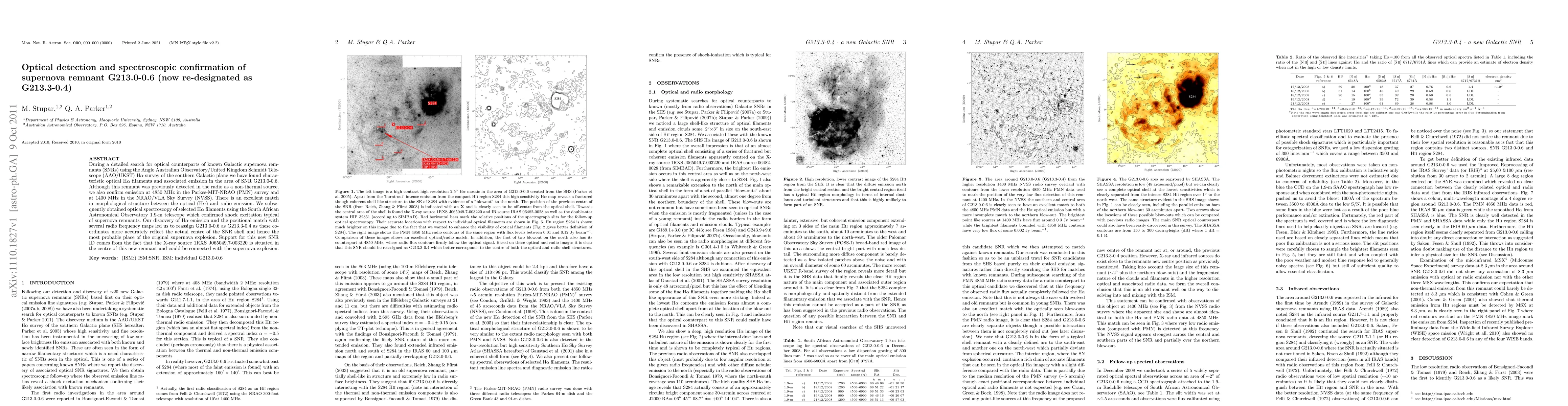 This paper discovers optical HAlpha filaments in a supernova remnant, confirming shock excitation typical of supernovae, and reassigns it as G213.3-0.4 with improved coordinates.