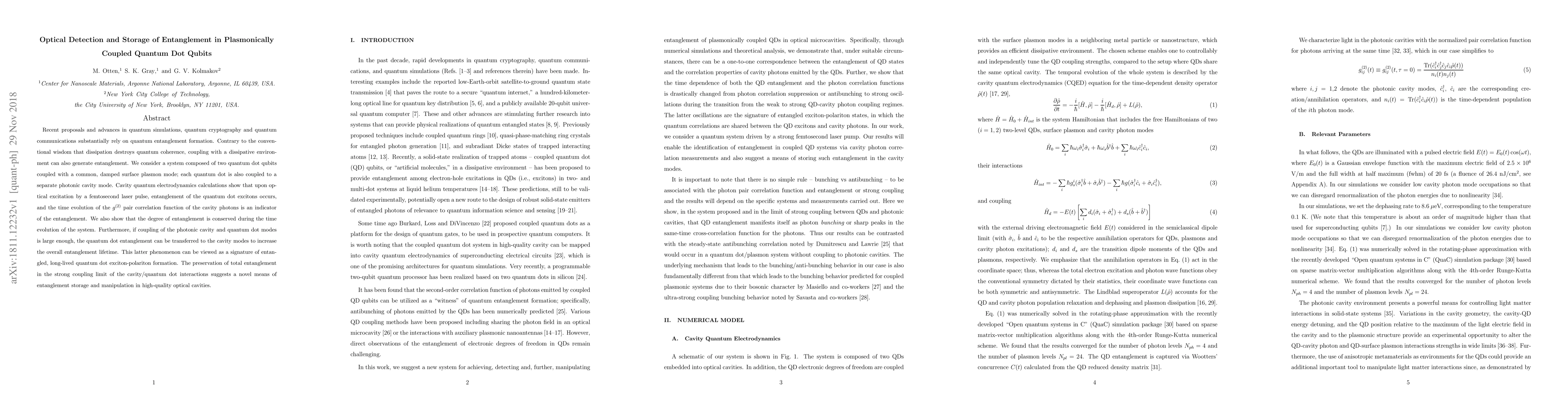 Recent proposals and advances in quantum simulations, quantum cryptography and quantum communications substantially rely on quantum entanglement formation. Contrary to the conventional wisdom that dissipation destroys quantum coherence, coupling with a dissipative environment can also generate entanglement. We consider a system composed of two quantum dot qubits coupled with a common, damped surface plasmon mode; each quantum dot is also coupled to a separate photonic cavity mode. Cavity quantum electrodynamics calculations show that upon optical excitation by a femtosecond laser pulse, entanglement of the quantum dot excitons occurs, and the time evolution of the $g^{(2)}$ pair correlation function of the cavity photons is an indicator of the entanglement. We also show that the degree of entanglement is conserved during the time evolution of the system. Furthermore, if coupling of the photonic cavity and quantum dot modes is large enough, the quantum dot entanglement can be transferred to the cavity modes to increase the overall entanglement lifetime. This latter phenomenon can be viewed as a signature of entangled, long-lived quantum dot exciton-polariton formation. The preservation of total entanglement in the strong coupling limit of the cavity/quantum dot interactions suggests a novel means of entanglement storage and manipulation in high-quality optical cavities.