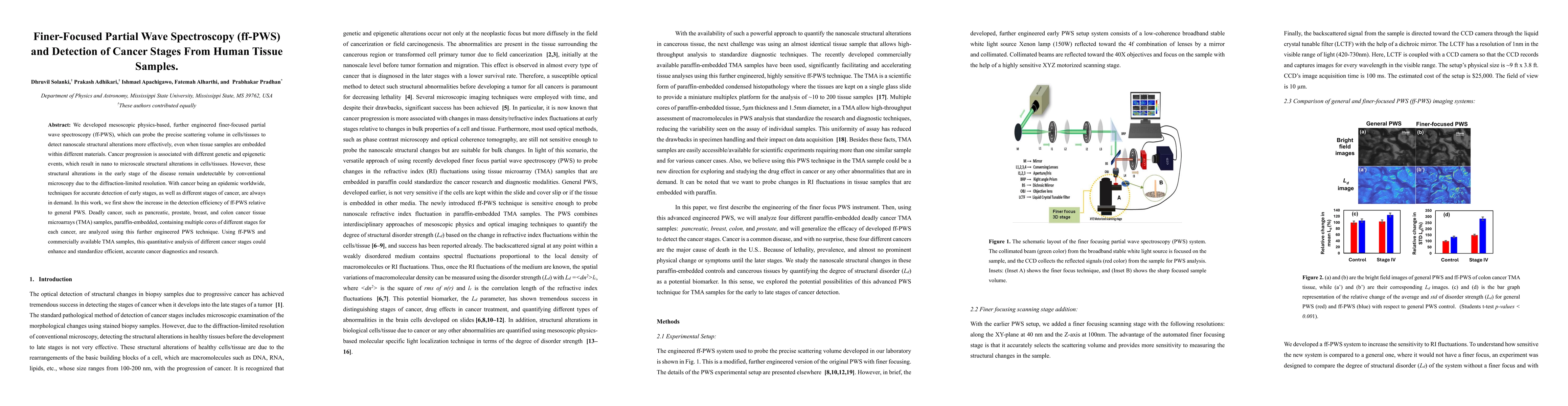 This research develops a partial wave spectroscopy (PWS) technique to detect nanoscale structural alterations in tissue microarrays (TMA) samples, enabling early and accurate detection of different cancer stages. The PWS method quantifies refractive index fluctuations, showing increased disorder strength correlating with higher cancer stages, thus enhancing standardized early cancer diagnosis.