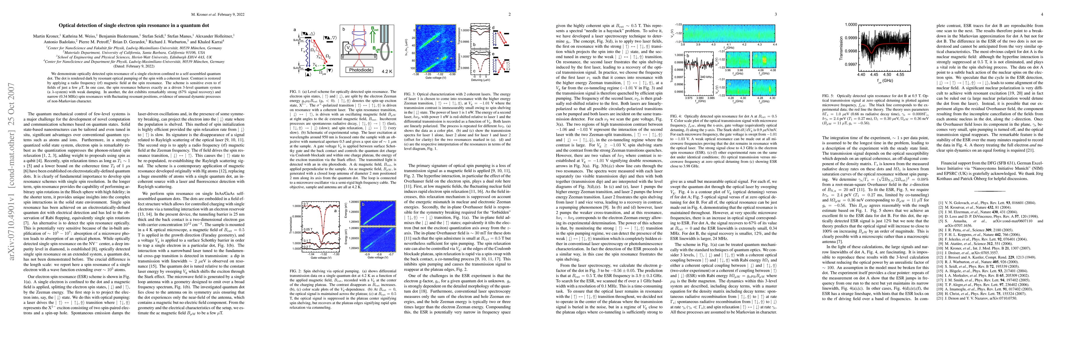 This paper demonstrates the optically detected spin resonance of a single electron in a self-assembled quantum dot, showing sensitivity to small radio frequency magnetic fields. The study reveals behavior akin to a driven 3-level quantum system and highlights strong, narrow spin resonances with non-Markovian dynamic processes.