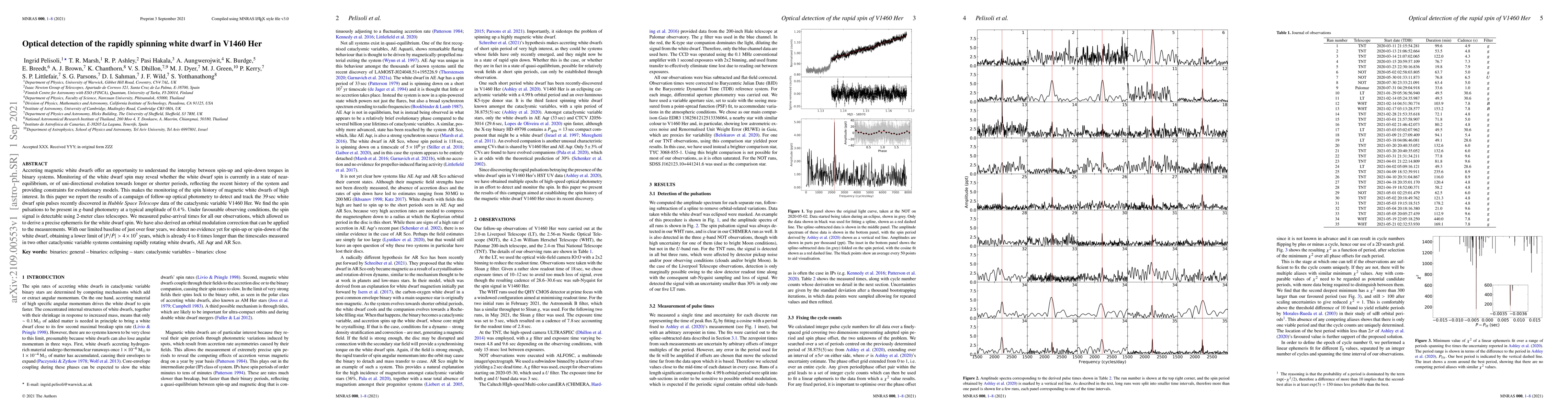 Accreting magnetic white dwarfs offer an opportunity to understand the interplay between spin-up and spin-down torques in binary systems. Monitoring of the white dwarf spin may reveal whether the white dwarf spin is currently in a state of near-equilibrium, or of uni-directional evolution towards longer or shorter periods, reflecting the recent history of the system and providing constraints for evolutionary models. This makes the monitoring of the spin history of magnetic white dwarfs of high interest. In this paper we report the results of a campaign of follow-up optical photometry to detect and track the 39 sec white dwarf spin pulses recently discovered in Hubble Space Telescope data of the cataclysmic variable V1460 Her. We find the spin pulsations to be present in g-band photometry at a typical amplitude of 0.4%. Under favourable observing conditions, the spin signal is detectable using 2-meter class telescopes. We measured pulse-arrival times for all our observations, which allowed us to derive a precise ephemeris for the white dwarf spin. We have also derived an orbital modulation correction that can be applied to the measurements. With our limited baseline of just over four years, we detect no evidence yet for spin-up or spin-down of the white dwarf, obtaining a lower limit of |P/Pdot|> 4e7 years, which is already 4 to 8 times longer than the timescales measured in two other cataclysmic variable systems containing rapidly rotating white dwarfs, AE Aqr and AR Sco.