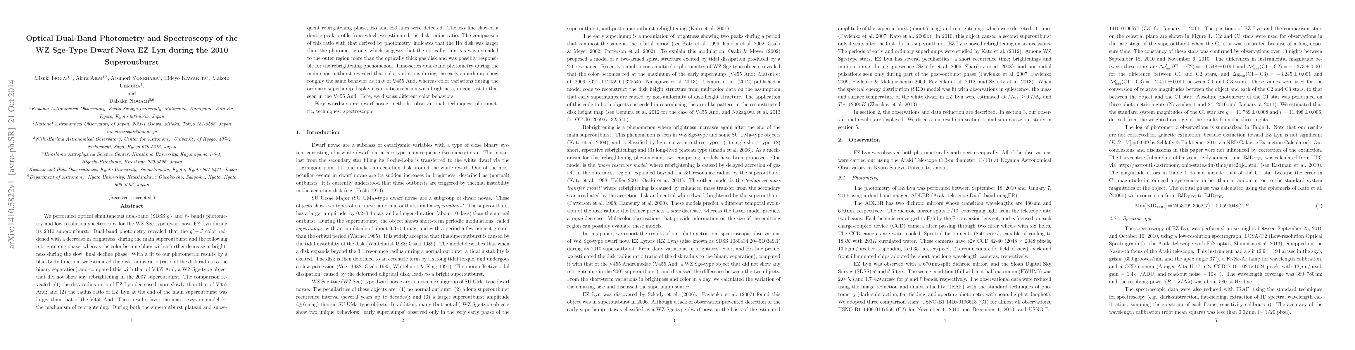This study conducted optical dual-band photometry and spectroscopy of the WZ Sge-type dwarf nova EZ Lyn during its 2010 superoutburst, revealing a complex color and brightness relationship. The observed rebrightening suggests a larger mass reservoir compared to another similar object, V455 And, supporting the mass reservoir model for rebrightening.