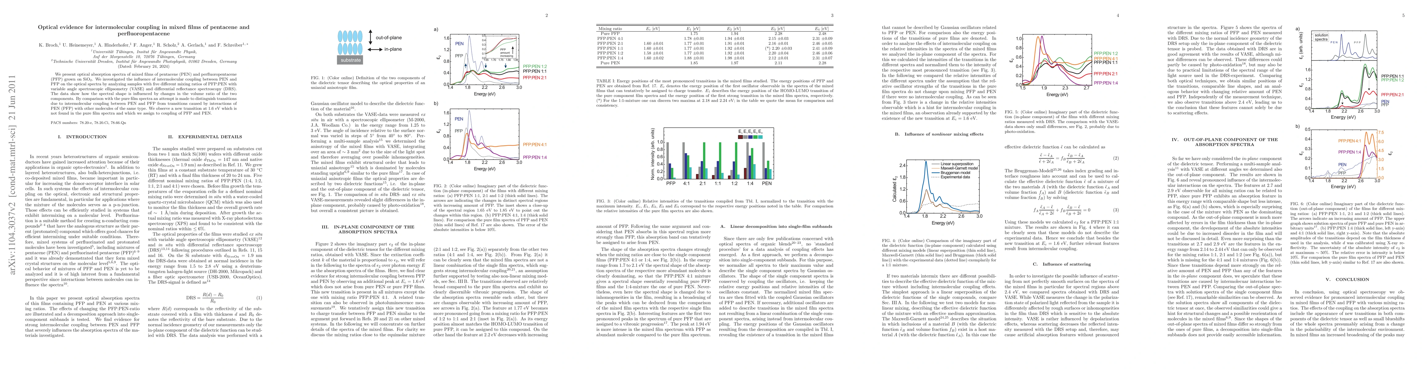 This research investigates the optical absorption spectra of mixed films of pentacene and perfluoropentacene, revealing a new 1.6 eV transition due to intermolecular coupling between the two compounds. The study uses spectroscopic ellipsometry and reflectance spectroscopy to analyze the spectral changes with varying mixing ratios.