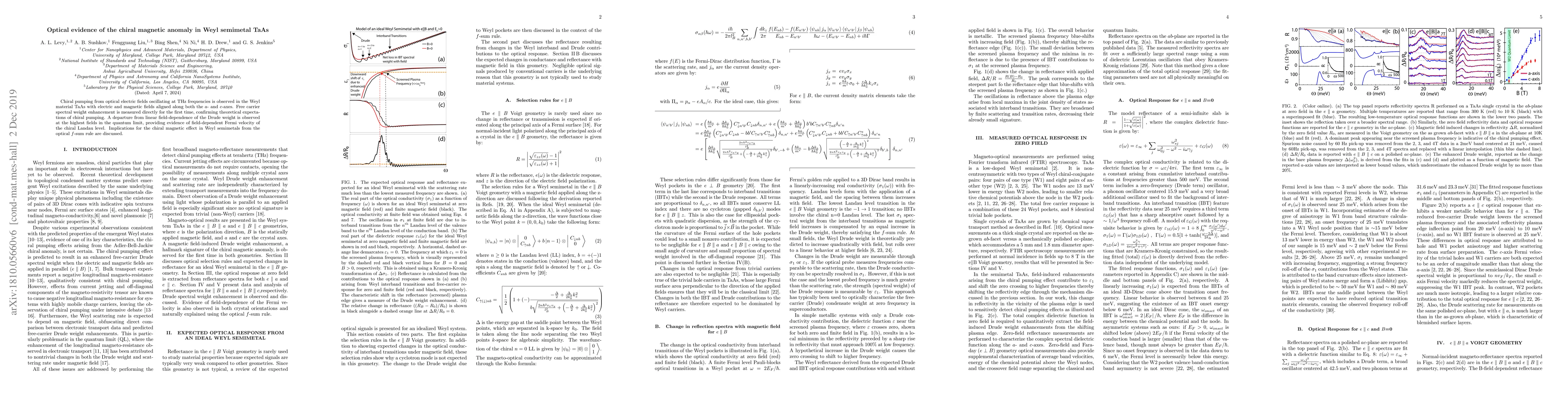 Chiral pumping from optical electric fields oscillating at THz frequencies is observed in the Weyl material TaAs with electric and magnetic fields aligned along both the a- and c-axes. Free carrier spectral weight enhancement is measured directly for the first time, confirming theoretical expectations of chiral pumping. A departure from linear field-dependence of the Drude weight is observed at the highest fields in the quantum limit, providing direct evidence of field-dependent Fermi velocity of the chiral Landau level. Implications for the chiral magnetic effect in Weyl semimetals from the optical f-sum rule are discussed.