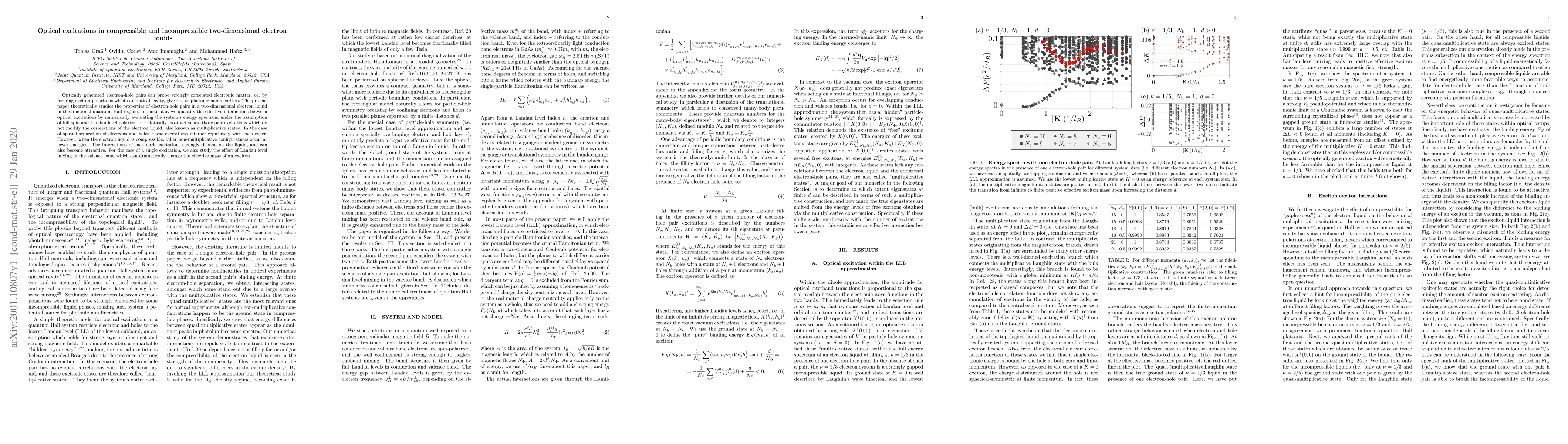 Optically generated electron-hole pairs can probe strongly correlated electronic matter, or, by forming exciton-polaritons within an optical cavity, give rise to photonic nonlinearities. The present paper theoretically studies the properties of electron-hole pairs in a two-dimensional electron liquid in the fractional quantum Hall regime. In particular, we quantify the effective interactions between optical excitations by numerically evaluating the system's energy spectrum under the assumption of full spin and Landau level polarization. Optically most active are those pair excitations which do not modify the correlations of the electron liquid, also known as multiplicative states. In the case of spatial separation of electrons and holes, these excitations interact repulsively with each other. However, when the electron liquid is compressible, other non-multiplicative configurations occur at lower energies. The interactions of such dark excitations strongly depend on the liquid, and can also become attractive. For the case of a single excitation, we also study the effect of Landau level mixing in the valence band which can dramatically change the effective mass of an exciton.